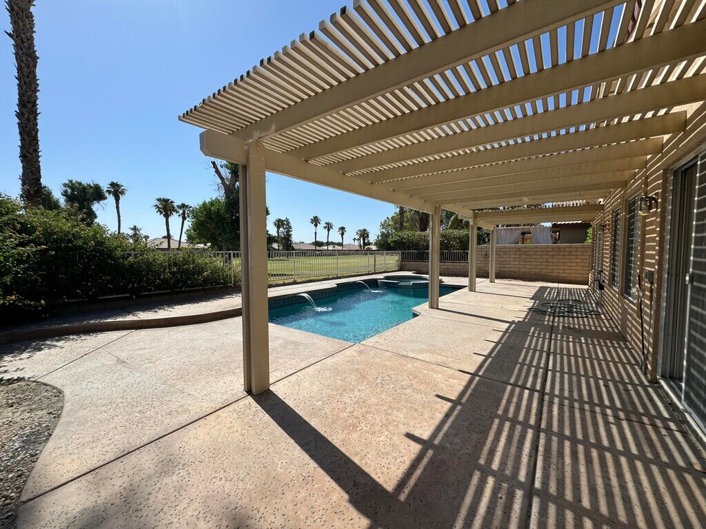 Captivating Golf Course Home in Indian Palms Country Club. This beautiful home offers the perfect blend of elegance and comfort,boasting: Three Bedrooms,Two Baths: Spacious and thoughtfully designed,this home features three bedrooms and two baths,providing a harmonious balance of private retreats and inviting communal spaces.Scenic Golf Course Views: Enjoy the breathtaking panorama of the manicured greens right from your backyard. This property offers a unique perspective on the Indian Palms Country Club golf course,creating a serene and picturesque backdrop. Private Pool and Hot Tub: Immerse yourself in the luxury of a private pool and hot tub,perfect for relaxation and entertaining. Whether you're enjoying a quiet evening under the stars or hosting a gathering with friends,this outdoor oasis adds a touch of resort-style living.