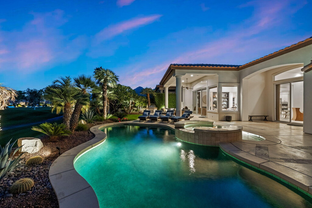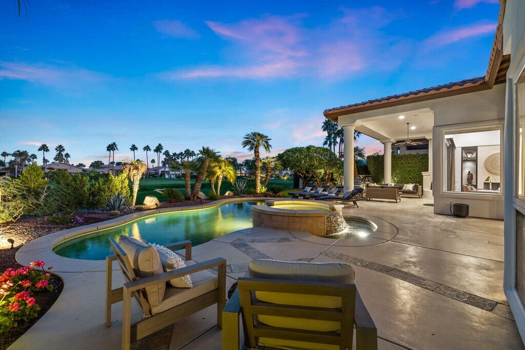 SOUTHWEST LUXURY MODERN LIVING at Rancho la Quinta! This exceptional recently renovated interior Montana 3 home celebrates privacy and position boasting 4 bedrooms,5 bath,a well equipped casita and exceptional property adornments with pool,spa and superior golf course views. Each spacious bdrm features new Sterns and Foster King beds ( 2 ),queen beds ( 3 ) each with fine linens and a primary bedroom enjoying convenient access to the pool area. A hosts' and entertainers delight begins with a casita complete with its own fireplace,television,king bed,coffee bar,fridge/microwave. The kitchen is an enteratiners delight complete double wolf ovens,a 6 burner Wolf gas range and subzero fridge - the formal dining area,step down bar and entertaining space seamlessly transitions to a backyard oasis complete with chaise lounges and a large BBQ area. This appealing property echoes 5 star living at Rancho la Quinta - a private country club with tenant privledges. Rates are as follows : June - Oct $ 16,000,Nov - Dec $20,000 April $ 23,000 Currently unavailable Feb / March 2026