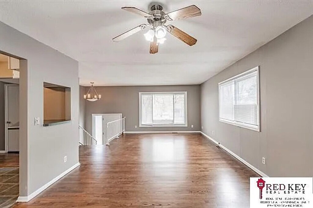 This beautifully maintained home offers tons of space and is located in the highly desirable Westchester of Millard neighborhood. Upper level features gorgeous wood floors and an open living/dining layout, perfect for entertaining. Fresh touch-up paint throughout the home gives it a clean, updated feel. All three bedrooms are conveniently located on the main floor. The lower level boasts a fantastic bonus room—ideal for hosting game day gatherings or creating your own media space. Step outside to enjoy a nice deck and extra garage space for storage or a workshop.