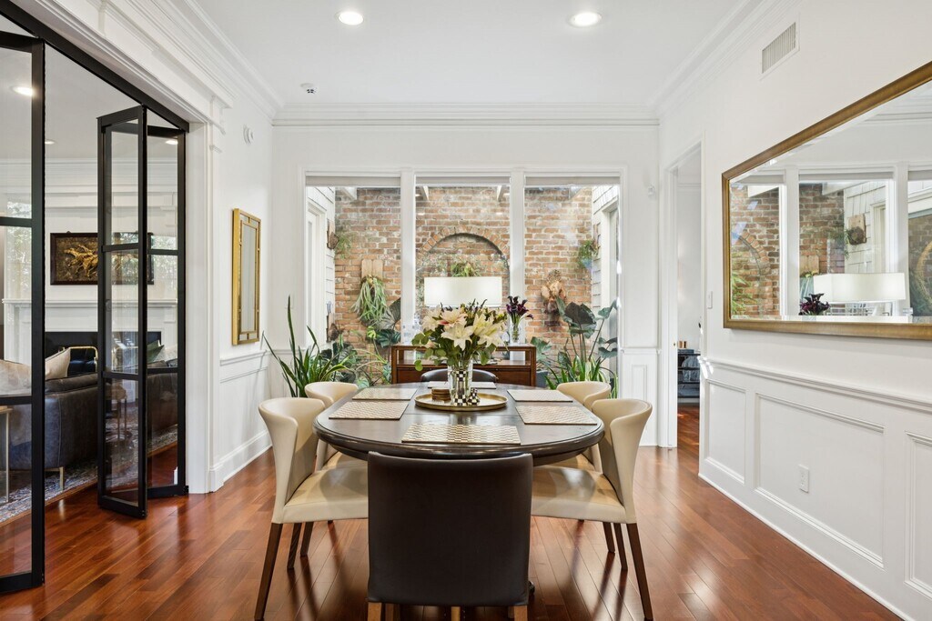 This distinctive end-unit townhouse,originally a freestanding residence,was later joined at the garage to its neighbor,preserving the feel of a stand-alone home. Designed by renowned architect Lucian Hood,it boasts soaring ceilings,abundant natural light from three sides,and expansive windows framing serene views of a landscaped green space. A private front courtyard and a dramatic sunlit atrium create inviting indoor-outdoor living. The home offers two spacious primary suites-one upstairs and one downstairs-each with large baths and generous closets. Extensive high-end upgrades enhance its elegance and comfort including two A/C units replaced 2024,2025 kitchen appliances,and quartz countertops in upstairs Primary replaced 2025. Custom glass doors in office and living room added 2025. Nestled on a quiet,oak-lined street in the sought-after Tanglewood area,residents enjoy a low-maintenance lifestyle with HOA-provided grounds care,security patrol,and access to the area pool. MLS# 26723923