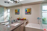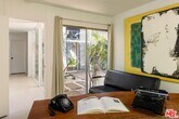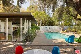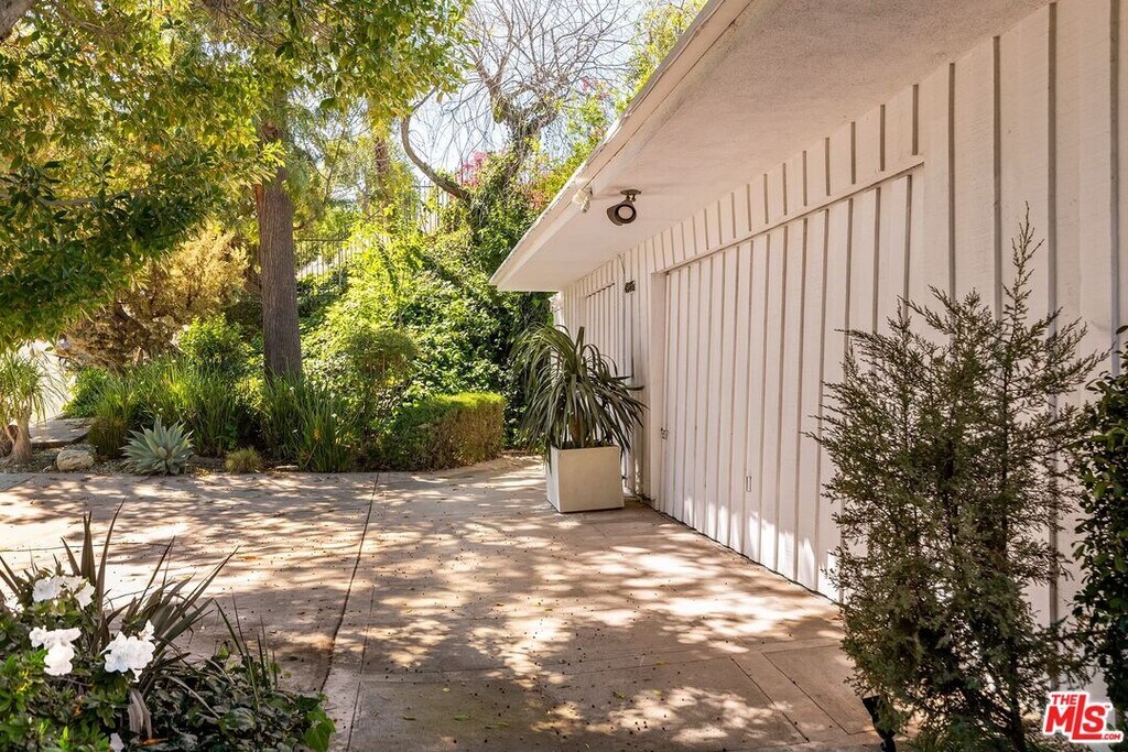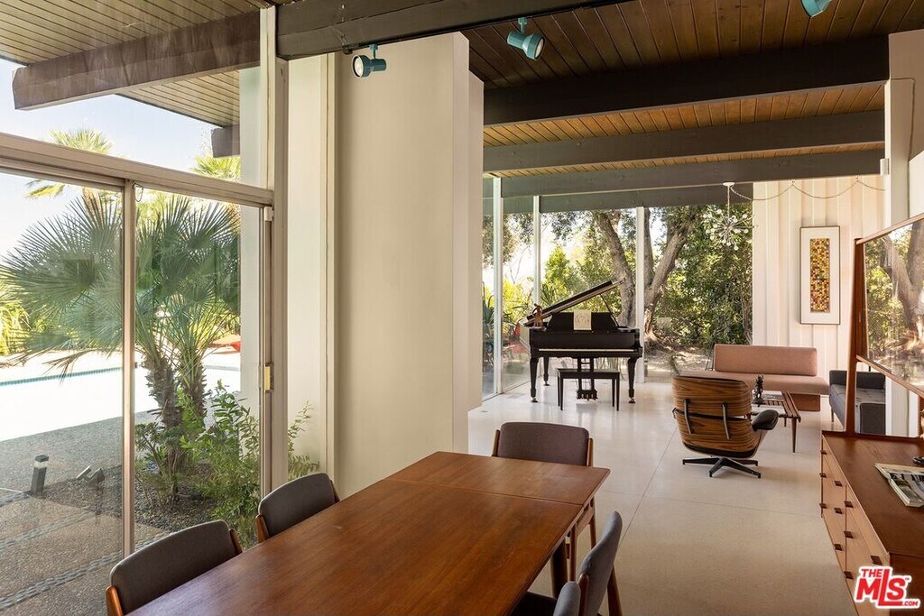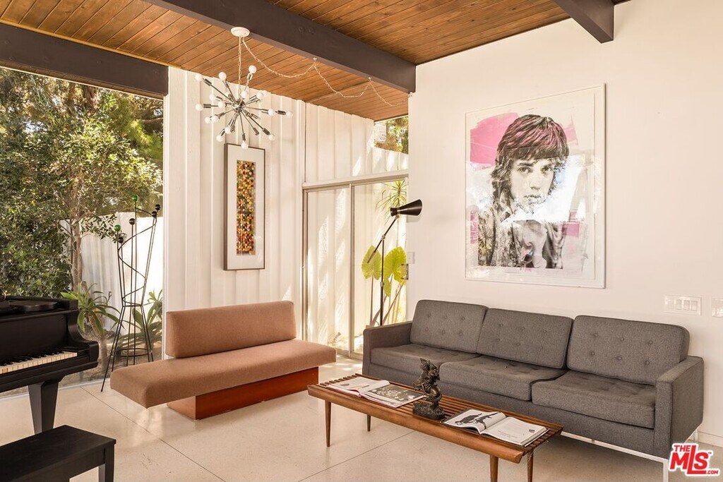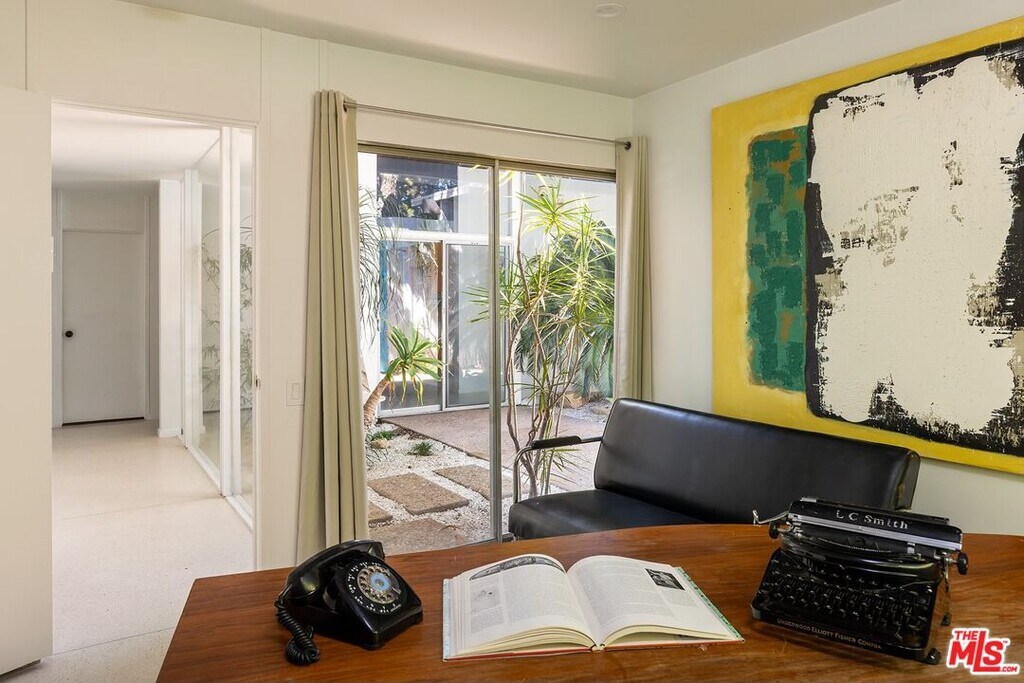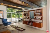 The Harlan Lee House, 1961. Jones and Emmons, FAIA. Originally commissioned for developer Harlan Lee and featured as the Good Housekeeping Model House, this residence epitomizes a dream house with young ideas" that defined the era's innovative spirit. Behind iconic sky-blue double doors lies a secluded garden courtyard, a central design element that allows the house to breathe and provides direct access to multiple wings of the house. Classic post and beam construction with soaring high ceilings, and floor-to-ceiling glass walls seamlessly connects the interior to the lush landscaping and swimming pool. Renovations have honored the original 1961 vision, restoring signature features like terrazzo floors and custom millwork. The cinematic living room is centered around a minimalist open fireplace. With over 2200 square feet of living space, this 4 bedroom/3 bath midcentury refuge also features an additional flex space with separate entrance, ideal for creatives/studio/home office. Situated on over a third acre in Tarzana's Royal Homes subdivision, the home's terraced lot offers views of the valley and mountains. Described by Good Housekeeping as "a house with the outdoors built in", this property represents a rare opportunity to live in a piece of architectural history that has been preserved as a living experience of 1960's modernism. Also available for lease furnished for $12,000 per month." MLS# 26669541