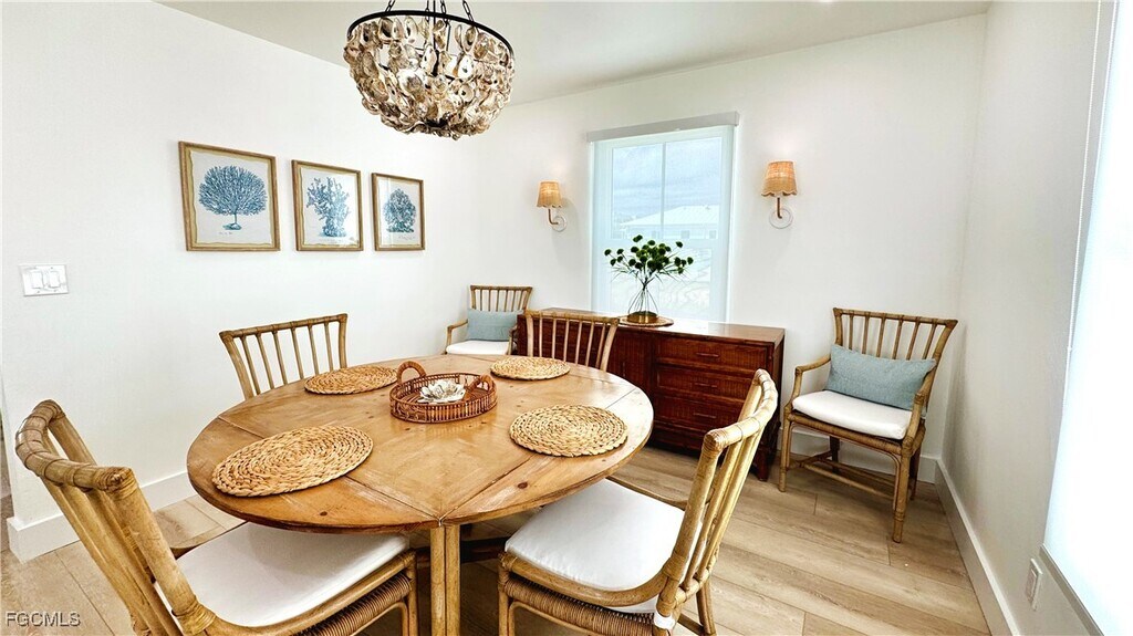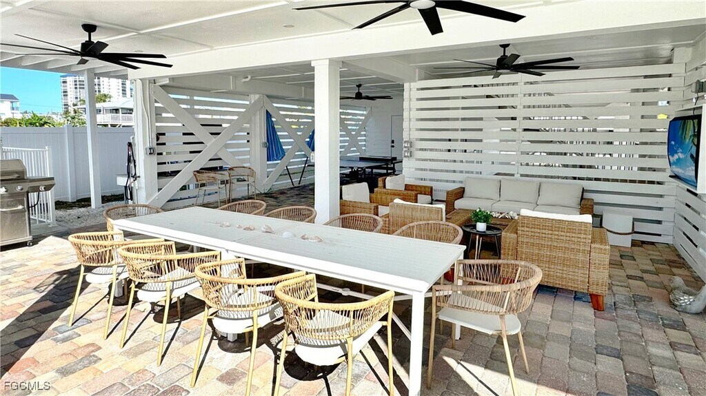 Ever want to simultaneously hit the putting green while relaxing by a beachside pool? Welcome to your coastal escape on Estero Boulevard,where modern farmhouse charm meets breezy beach living. Just steps from the white sands of Fort Myers Beach,this fully renovated home is brimming with classic curb appeal,featuring a welcoming white picket fence,a front porch with four cozy rocking chairs- the perfect spot to sip your morning coffee or watch island life drift by.