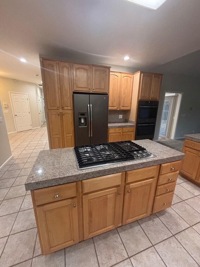 This 2000+ sq ft home in the Brush Creek area of Rincon Valley has 3 bedrooms and 2 bathrooms with new paint and carpet and an updated kitchen all on a single level. The kitchen features granite countertops, stainless steel appliances including a 5 burner gas cooktop, double wall ovens, dishwasher and refrigerator. There is a formal dining room as well as a breakfast nook. A large formal living room and a family room complete with a gas fireplace and sliding glass door to the backyard. Central heat and A/C. Washer & dryer provided but not warranted. 2 car garage with EV charger capabilities. Lovely landscaped backyard with 2 patios areas. Landscaping included. Sorry, no pets or co-signers. 1 Year lease. (MT)