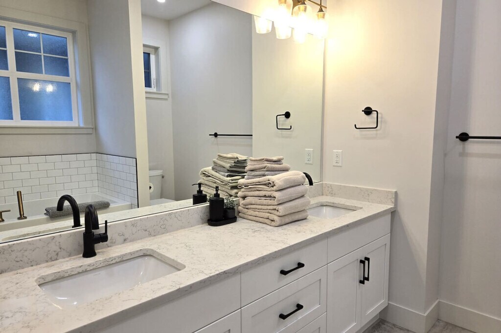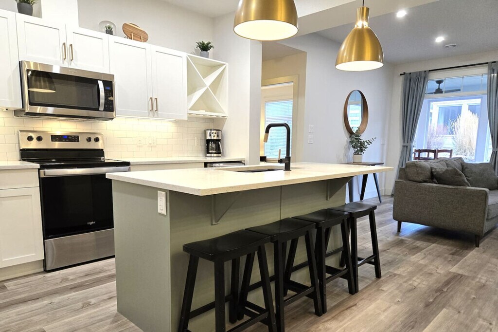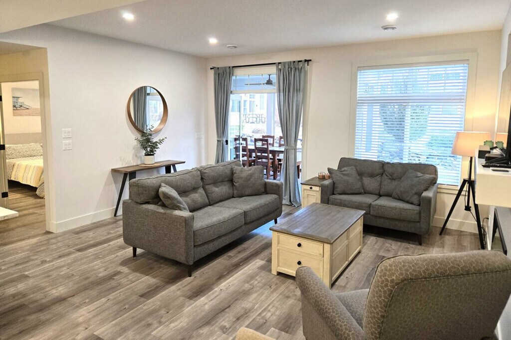 The advertised rate of C$3,729/month is the lowest available price, based on a 30 day(s) stay with a move-in date of October 24, 2026. Rates vary depending on the duration of stay, season, and other parameters. For exact pricing and additional pricing components, please visit our website and enter your desired move-in and move-out dates. The rate is applicable when billed upfront; it can be higher if billed in multiple payments. Feel at home in this luxurious 5-bedroom, 4-bathroom home nestled in the heart of Wine Country. Located in a secure, gated community, this immaculate home offers luxury, comfort, and endless fun for families and groups. This spacious and stylish home features quartz countertops, a gourmet kitchen fully equipped for cooking, a cozy living room with plush seating, and a screened-in sunroom. The main floor includes a king-size master suite. Upstairs, you'll find a second king-size suite with a private balcony, two queen bedrooms, and a single over double bunk room. An outdoor patio features a fire table, barbecue, and large dining table. A golf cart is available to rent and a boat slip is available upon request. This home is practically beachfront in the development, situated right on the famous Black Sage Bench, surrounded by world-class wineries. Enjoy wine tasting at nearby vineyards, skiing at Mount Baldy, and thrills at Area 27 Motorsports Park. The primary renter must be a minimum of 30 years old. Quiet time is after 11 pm. No smoking and no pets are allowed. Beach gear is provided, including beach towels, beach chairs, a beach umbrella, a wagon, two paddle boards and paddles, two kayaks and paddles and transportation wheels, four life jackets, ladder golf, bocce ball, miscellaneous balls, and beach toys. Excellent Wi-Fi and parking for three vehicles are included. [SI]