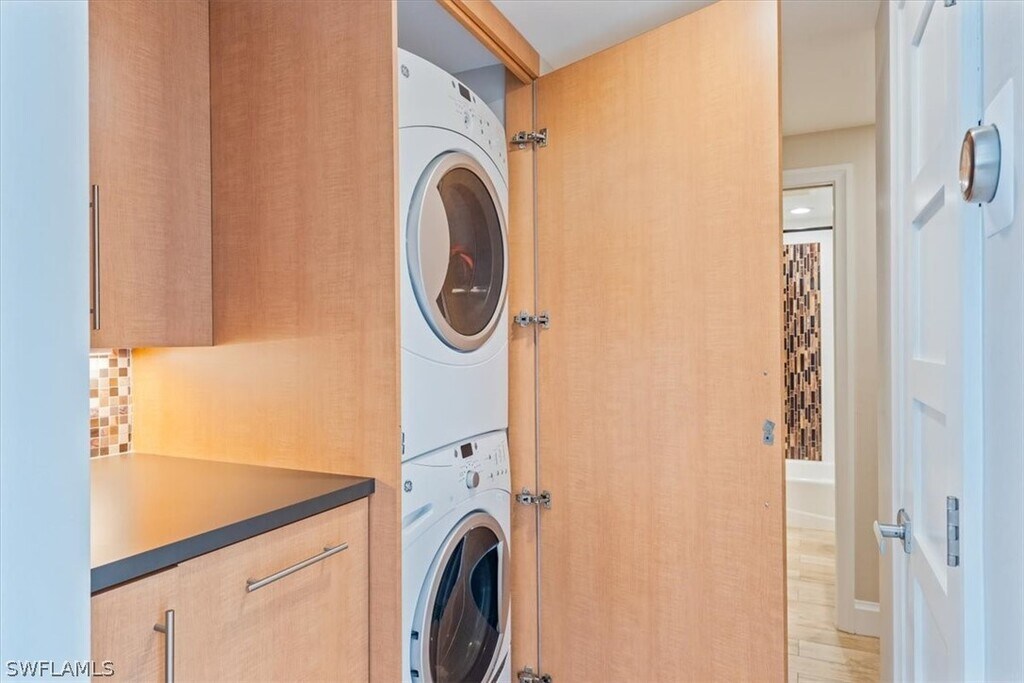 AVAILABLE:::February and April,2025. Pool is Complete and Renovated. Experience breathtaking waterfront sunrises over the bay creating an artful display in the sky. Renovated w/ modern luxury for the most discerning taste,this 3BR/2BA Bridgewater condo boasts an industrial-modern chef's kitchen adorned w/ steel & wood finishes,Wolf appliances,induction cooktop,Sub-Zero refrigerator & walk-in pantry. Impact doors & windows flood the space w/natural light,while the interior is a showcase of meticulous craftsmanship w/custom cabinets,full-size washer/dryer & ceramic wood-look tile floors that enhance the contemporary aesthetic. Arise to stunning Bay views in the owner’s suite,w/his/hers custom closets & en-suite featuring Lustrolight walls in the shower,concrete double sinks & Robern lift mirror systems. Enjoy the large swimming pool & spa overlooking the bay,grilling area & active social community w/poolside happy hours,barbecues & social gatherings. With just 5-7 minutes to the Gulf by boat,or a short walk to beautiful Barefoot Beach,this residence provides a coveted waterfront lifestyle. The unit includes one under-building dedicated parking space,ample guest parking & a secure elevator.