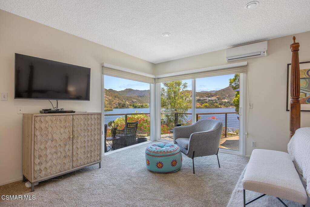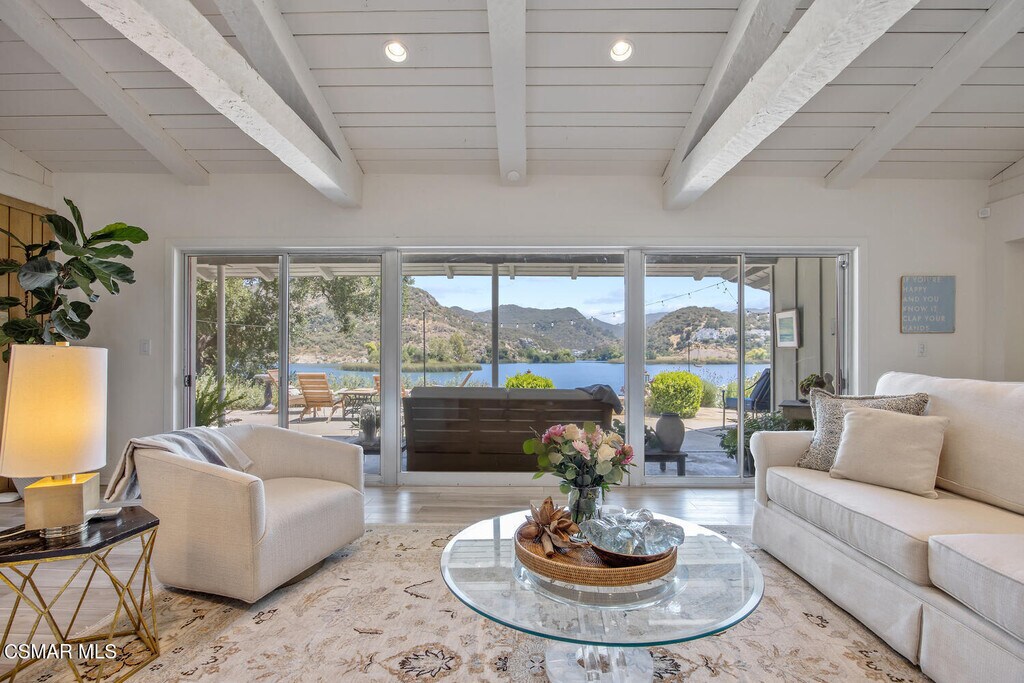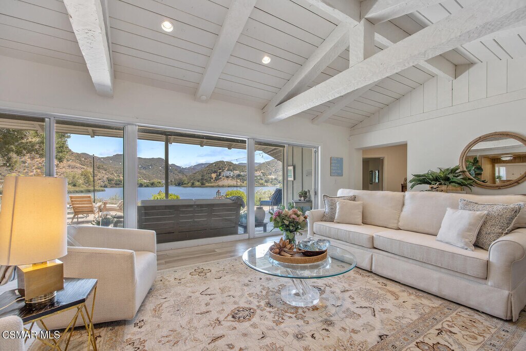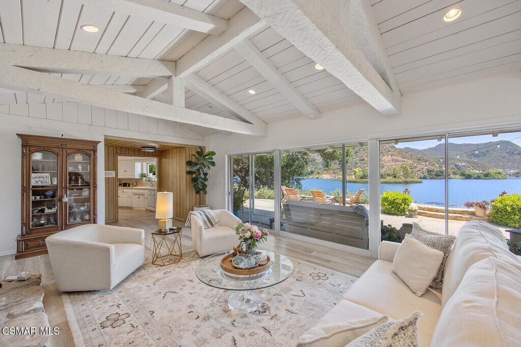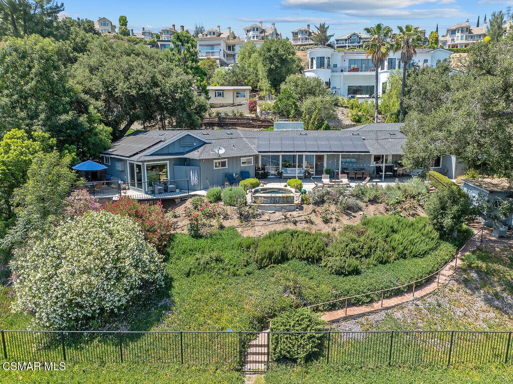 Experience vacation living every single day living at this lakefront home in prestigious Lake Sherwood. A home in this highly sought after location is rarely on the market, and this waterfront locale is arguably THE BEST SPOT on all of Lake Sherwood. Sitting out on the back patio watching the birds and the boats go by is the most relaxing experience and this view is a panoramic lake view right in the middle of the lake. You can see the water shimmering on the lake from almost all the rooms in the home and since the back of the home faces West, the angle of the sun at this home is ideal. At sunset, take a soak in the gorgeous stone infinity spa and life is darn good. This home comes with a private boat dock located right in front. The property features private oak trees and rose and lavender gardens that extend from the patio to the water. With three bedrooms and a spacious office, and two full bathrooms plus a powder bathroom, this ONE STORY home is a wonderful retreat. Bulit in 1954, much of this home has been updated, but it has retained it's vintage charm. The primary bedroom is enormous with a large walk-in closet and floor to ceiling windows to enjoy the lake view at any time of day. The kitchen is a gallery style kitchen with a new induction stove, and the large walk-in pantry will delight all family members. There is also an indoor laundry room with a sink. One perk of this location is access to the private walkway in front of the lake front homes on the north side of the lake which is a magical place to take a morning walk. There is also a converted boat house for extra storage. Please note there is a carport for two cars and ample parking on the driveway but no garage.