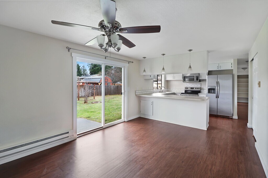 Oak Harbor Property Management See (1). for IMPORTANT Schedule Showing instructions. 3 bedroom 2 bath home conveniently located near downtown. Spacious living room leads to kitchen complete with stainless appliances, ample cabinets, and an eat in bar. Dining room off kitchen with slider leads to fully fenced backyard ideal for pet. Den adjacent to kitchen with another small room ideal for a home office. Pet friendly per approval. Groups per approval. No use of wood burning fireplace. Ideal Pacific Northwest recreational access and close proximity to NAS Whidbey. (1). Schedule showing(s) and apply online at rentoakharbor[dot]com/availability. For Property NOT AVAILABLE NOW, one Tenant must apply. For Property AVAILABLE NOW, prescreening is required. Showing requirements do not guarantee availability. (2). Security deposit listed (minimum amount and subject to change) includes nonrefundable administrative fee. Each applicant requires PetScreening profile regardless of pet(s) and/or animal(s) (emotional support, service, etc.) completed via rentoakharbor[dot]petscreening[dot]com. Applicant(s) responsibility to confirm cell phone, internet, cable, etc. availability.