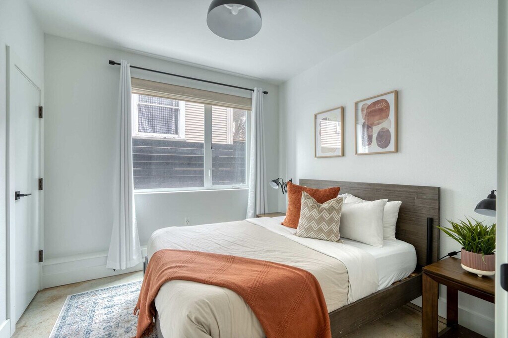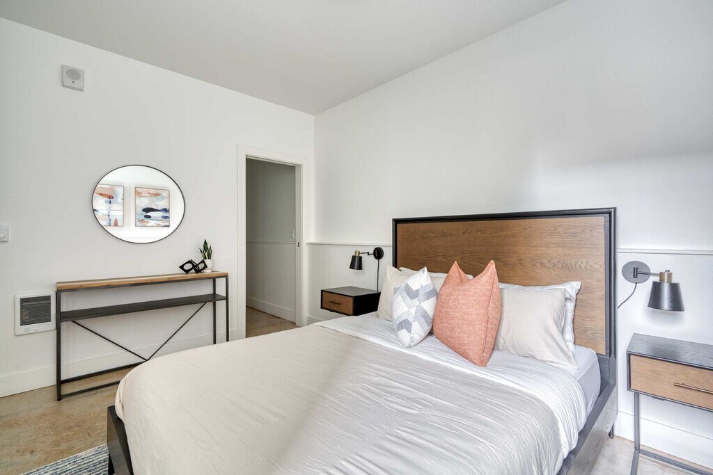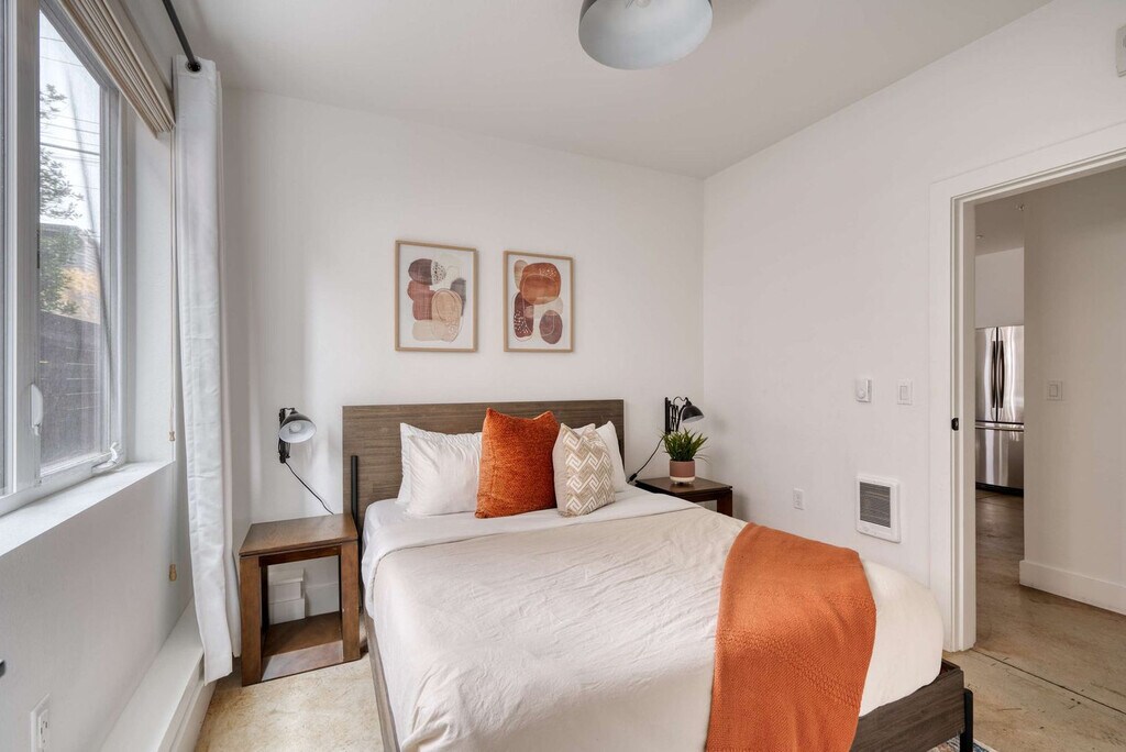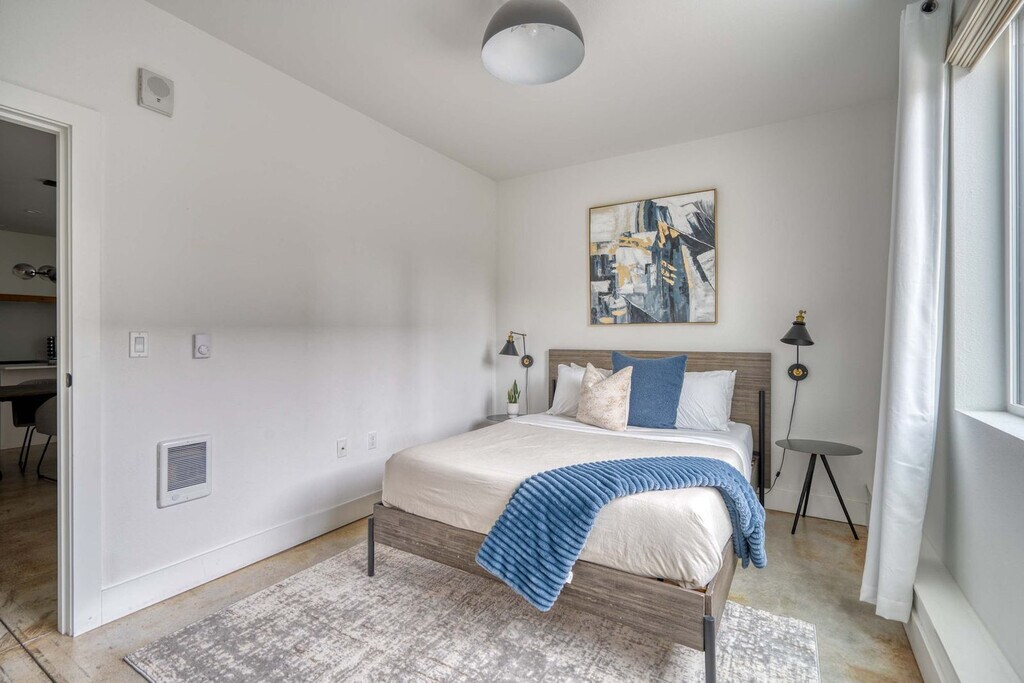 Feel at home in this ideally located apartment nestled between some of the most vibrant neighborhoods in North Portland. This brand-new building features high-end finishes, providing a luxurious retreat where you can unwind after a day of exploring all that Portland has to offer. This apartment is more than just a place to stay—it's a live-in gallery featuring works from up-and-coming local artists. Each piece of artwork is available for purchase, allowing you to experience and imagine how it might look in your own home. Pets are welcome with a fee of $99 per dog, with a max of 2. Located in the heart of the vibrant Boise neighborhood, this apartment offers an ideal location for exploring Portland. You can walk to the bustling bars, renowned restaurants, and lively shows on Williams, N Mississippi, and Alberta streets. Just a short ride away from the lively Mississippi Street and Alberta areas, you'll find yourself within walking distance of many popular destinations. Enjoy a stroll to the beautiful Alberta Park, known for its majestic Doug Fir trees, or indulge in local foodie favorites. This quiet, cozy neighborhood is also conveniently close to Concordia University. Within walking distance, you'll find two fantastic food cart villages and several public transportation lines, making it easy to take a quick ride into downtown Portland. You're also just a short drive away from the heart of the city. Within a short walk, you can explore some of Portland's famous spots. Smoking tobacco or marijuana inside is strictly prohibited and if detected, will result in $150 penalty. Events and/or parties are strictly prohibited and will result in fines per host discretion and immediate eviction. Unauthorized use of extra beds or bedrooms will result in a fine of $75. Undeclared pets are subject to a $200 per stay penalty. Any unauthorized early check-in or late check-out is subject to a $75 fee. A lost, missing, or otherwise unreturned key is subject to $100 fee. Missing remotes will incur a $50 fee. Violation of house rules may result in eviction and/or monetary fine. [SI]