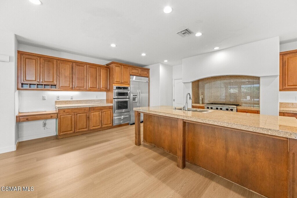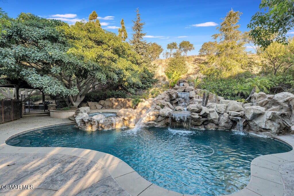Linda HutchingsEnjoy Absolute Peace & Serenity in your own private Resort Style Dos Vientos Residence! Over 4,000 sq.ft. at the end of cul de sac on a 20,000+ square foot lot with the most amazing private yard backing open space. Magical Pool w/ cascading waterfalls, spa & WATERSLIDE. Enjoy Entertaining large gatherings with the enormous covered pavilion that fits a spacious dining table plus sitting area; Patio with Outdoor Fireplace and Grassy area. Immaculate 5 bedroom home with recently installed wide plank wood-like flooring throughout. Entertaining is a dream with the formal Living Room & Formal Dining Room adjacent to the Spacious Great Room featuring Gourmet Kitchen with Large Center Island, Granite Counters, Stainless Steel appliances, large eating area open to Huge Lounging Area with Fireplace/Entertainment Center. Primary Suite w/ Library Retreat, Fireplace, Office Nook, Jetted Tub, Separate Vanities, Organized Walk-In Closet. Crown Molding, Plantation Shutters, and so much more! One Bedroom & Bath Downstairs. Downstairs Bedroom does not have a closet. Enjoy epoxy floors in large garage. Separate hidden third car garage for additional storage. Fall in Love Here! This is a one of a kind Dos Vientos home. Do not miss this opportunity! Enjoy fabulous parks, tennis, playgrounds, hiking trails and the best schools all just steps away.
