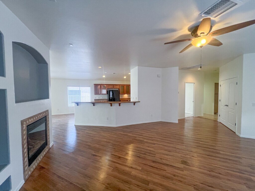 Single level 2 Bedroom plus a DEN home in the desirable gated subdivision of Amante at Verde Santa Fe. Community clubhouse and pool privileges included in rent. Enjoy a split floor plan and open concept main living. This kitchen offers corner a walk-in pantry, side by side refrigerator dishwasher snd large breakfast bar. Spacious primary bedroom with ensuite bathroom boasts dual vanity, step-in shower and large walk-in closet. Hard surface flooring throughout - No carpet! Dedicated laundry room with full size washer and dryer included. Enjoy views of Mingus Mountain from your backyard. Covered back patio with extended patio area is a nice added touch. Tenant pays trash, electric, gas and water. Call to schedule a showing. Visit for additional information. Renters insurance required. Pets negotiable.