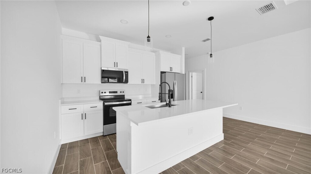 Be the first to live in this stunning brand-new construction duplex,offering modern design,comfort,and functionality. This spacious 3-bedroom,2-bathroom residence features a bright open-concept layout with sleek contemporary finishes,quartz countertops,and stainless steel appliances throughout the kitchen. The thoughtfully designed split-bedroom floor plan provides added privacy,while the generous primary suite includes an en-suite bath. Additional highlights include tile flooring throughout,in-unit washer and dryer,a 2-car garage,and a screened-in covered lanai—perfect for relaxing or entertaining outdoors. Utilities & Maintenance: Property is served by a private well — no water or sewer bills Tenant responsible for electricity and all other utilities (cable,internet,and optional services) Washer and dryer are provided by the landlord for tenant use and convenience. Tenant agrees to use all appliances properly and promptly report any maintenance issues; damage caused by misuse or negligence will be the tenant’s responsibility. Conveniently located near schools,shopping,dining,and major roadways,this home offers the perfect balance of comfort and accessibility. Move-in ready and easy to show — schedule your private tour today.