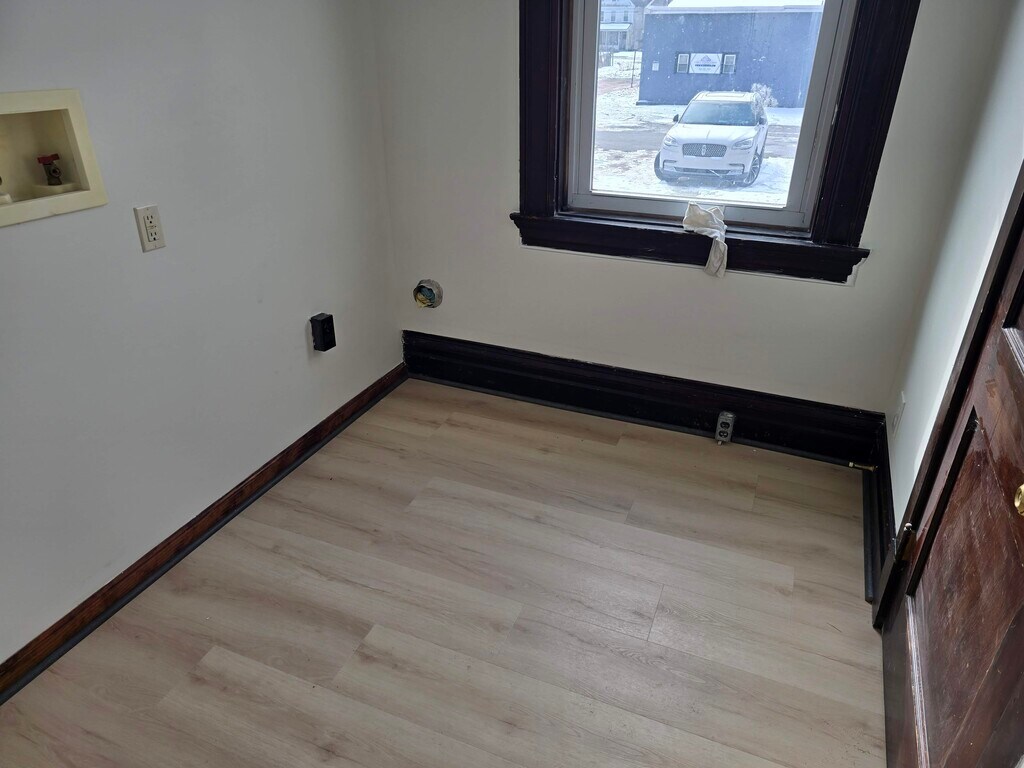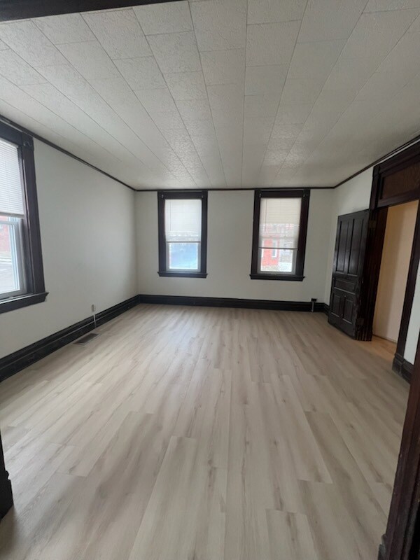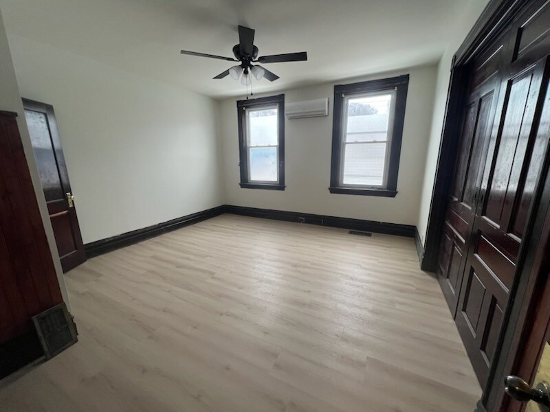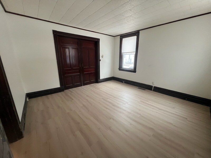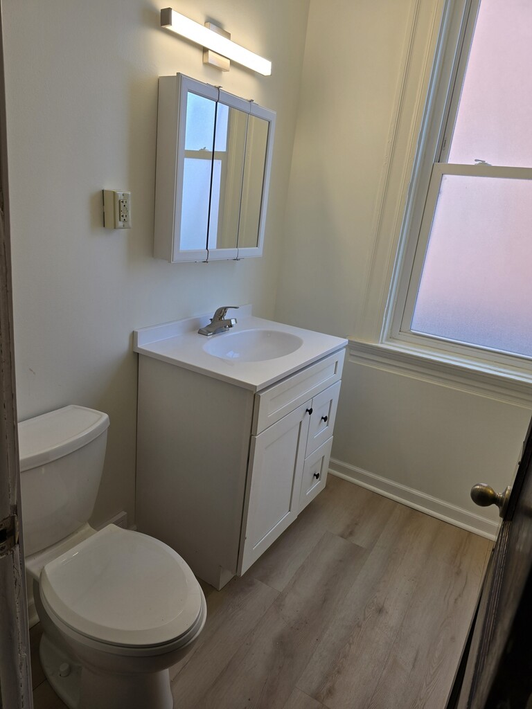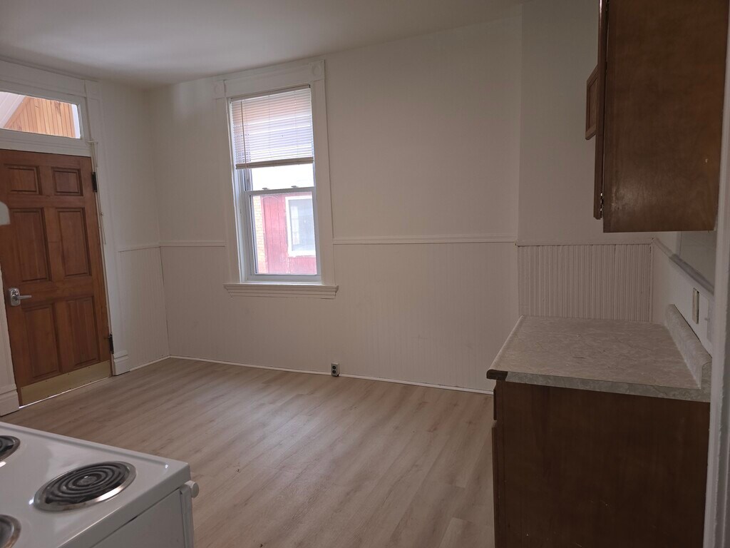 Spacious 1st floor apartment with unit laundry. Fully equipped eat in kitchen, 2 bedrooms, updated full bathroom. Large room sizes with high ceilings. Enclosed side porch. Off street parking and access to the full basement for additional storage space.