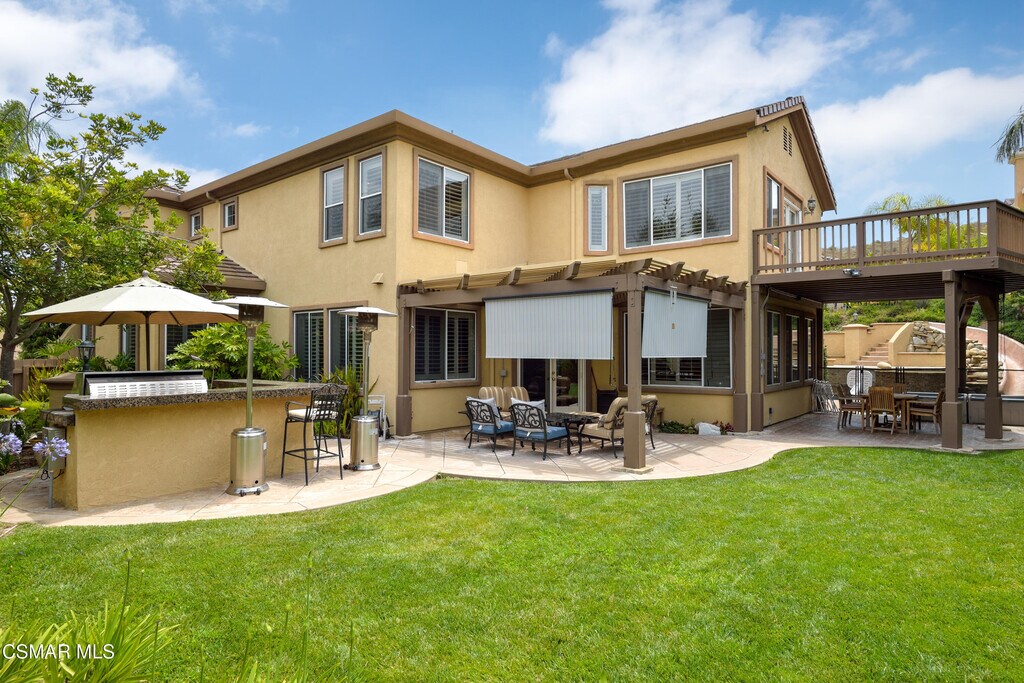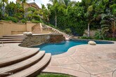 Vizcaya Pool Home! Near award-winning Sycamore Canyon School, this spacious floor plan sits on a premium lot that includes a solar-heated pool, raised spa, cozy fire pit, built in bbq, and lush lawn - it's an entertainer's delight. The attractive interior features volume ceilings, distressed hardwood flooring and cabinetry, crown molding, plantation shutters, a wrought-iron staircase, an oversized family room, and a downstairs bedroom with a full bath. The large kitchen with pantry offers a generous center island, stainless steel appliances, including a built-in refrigerator, and granite. Upstairs, enjoy views from the primary balcony or curl up near the cozy fireplace. Primary bath features a soaker tub, separate shower, and a large walk-in closet. Two more large bedrooms and bonus room - perfect for as fifth bedroom or playroom. The property also has its own propane generator that will automatically switch on in case of power failure. Don't miss out!