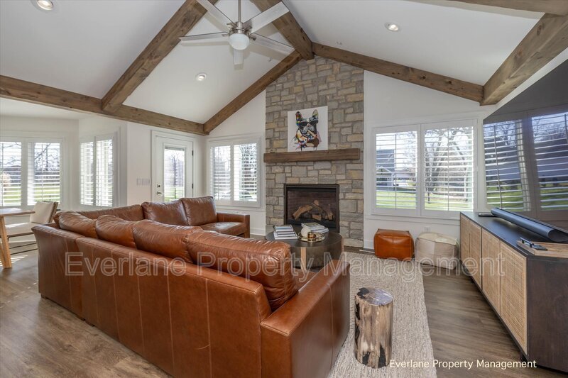 UNFURNISHED – Move-in Ready! Modern 4 Bed, 2.5 Bath Craftsman-style ranch in downtown Carmel, near Carmel Clay Schools, shopping, and the Arts & Design District. Open floor plan with vaulted great room, stone gas fireplace, white kitchen with high-end appliances, counter-height bar, and subway tile backsplash. Features include indoor/outdoor built-in speakers, TVs in great room and master, wood beams, vaulted ceilings, and recently installed HVAC. Circular driveway to 2-car garage + storage bay. Private fenced backyard with outdoor gas fire pit. Walk to shops, restaurants, breweries, Monon Trail, and cultural venues. Easy access to US 31 and Keystone Ave. Ideal for families, professionals, or retirees. RENTAL TERMS: * 12-month lease * Rent due monthly by the 1st * Security deposit: 1 month's rent * Tenant pays utilities * Pets allowed per policy * All adults (18+) must apply * Standard occupancy & rules apply FEES: * Application Fee: $35 * Tenant Screening Fee: $30 (Non-refundable)