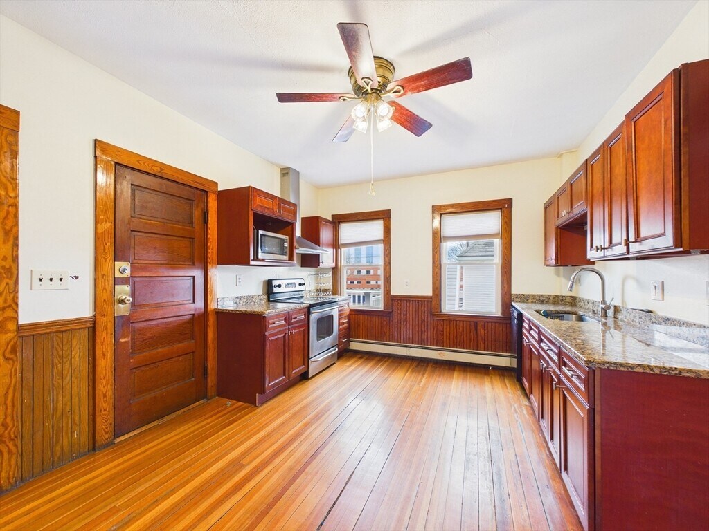 Spacious and inviting second-floor apartment just moments from the heart of Norwood Center. This well-maintained unit features an updated kitchen with cherry cabinets and granite countertops,offering both style and functionality. Hardwood floors run throughout,complemented by high ceilings that create an open,airy feel. The layout includes two comfortable bedrooms plus a small office—perfect for working from home or additional storage. Enjoy the convenience of a private entrance,off-street parking,and in-unit laundry hookups. Ideally located near shops,restaurants,and commuter options,this apartment offers both comfort and convenience in a prime location. MLS# 73497435