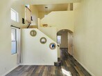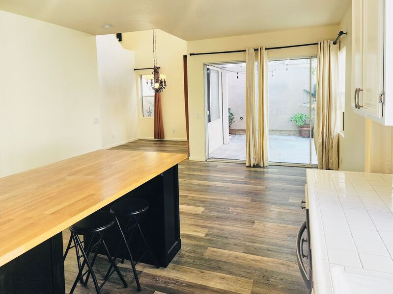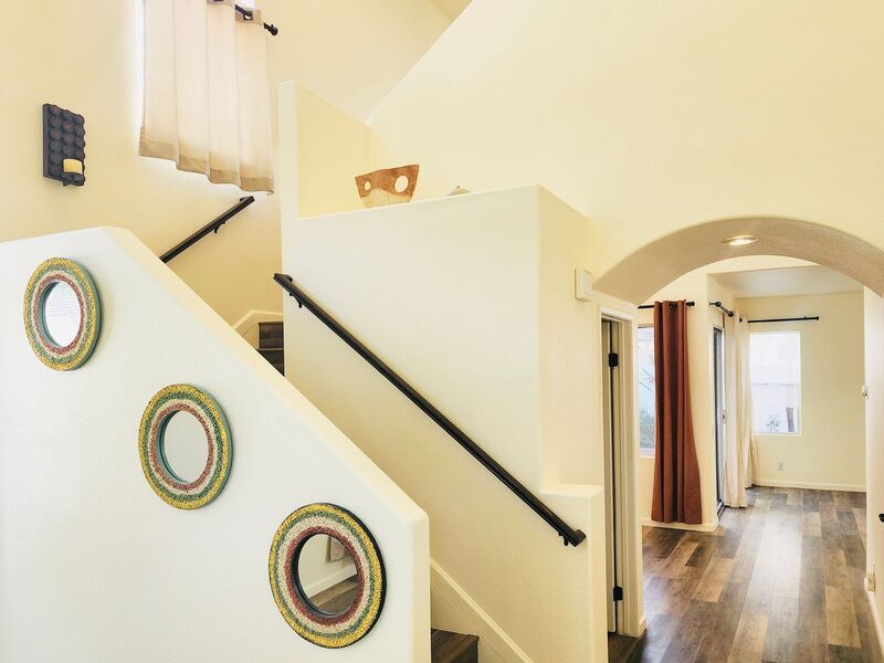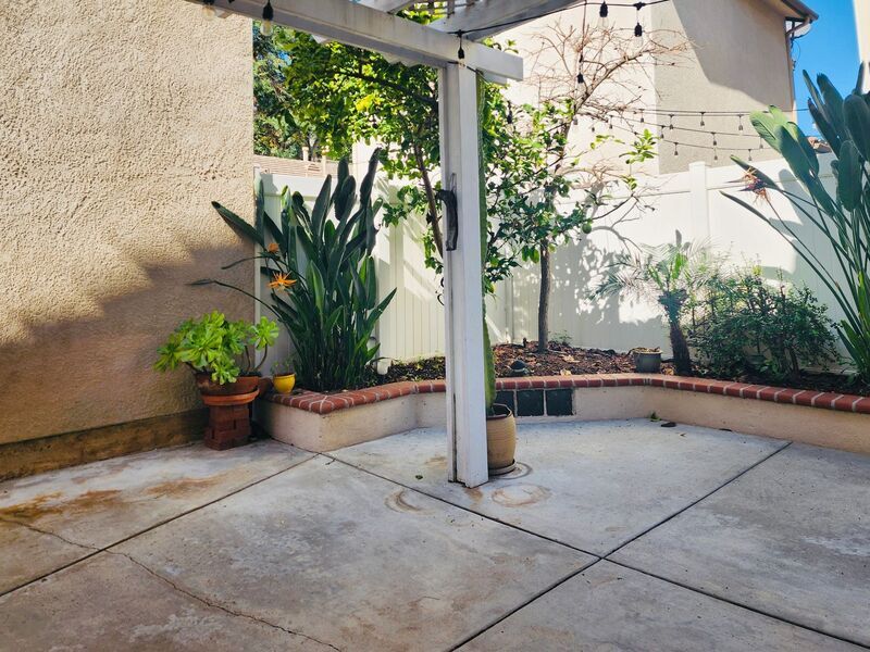 Welcome to 5 Andaluz in the highly desirable community of Aliso Viejo! This beautifully maintained 3-bedroom, 2.5-bath two-story home offers 1,529 square feet of bright, open living space with soaring ceilings and a private backyard retreat. Step inside to an inviting living area featuring dramatic high ceilings, abundant natural light, and a cozy fireplace—creating a warm yet spacious atmosphere. Updated wood-style flooring flows throughout the home, enhancing its clean, modern feel. The open-concept kitchen features white cabinetry, stainless steel appliances, generous storage, and a center island with butcher block countertop—perfect for meal prep, entertaining, or casual dining. Sliding glass doors open to a private backyard complete with patio space, raised brick planters, mature landscaping, and a charming pergola—ideal for relaxing evenings or weekend gatherings. Upstairs you’ll find all three bedrooms, including a spacious primary suite with mirrored closet doors and en-suite bath. Secondary bedrooms are well-sized and share an updated full bathroom with modern black fixtures. Convenient upstairs laundry adds everyday practicality. Additional highlights include a downstairs powder room, attached 2-car garage, abundant natural light, and a well-maintained exterior with excellent curb appeal. Located near award-winning schools, parks, hiking trails, shopping, dining, and convenient toll road access, this home offers the perfect blend of comfort, style, and location.