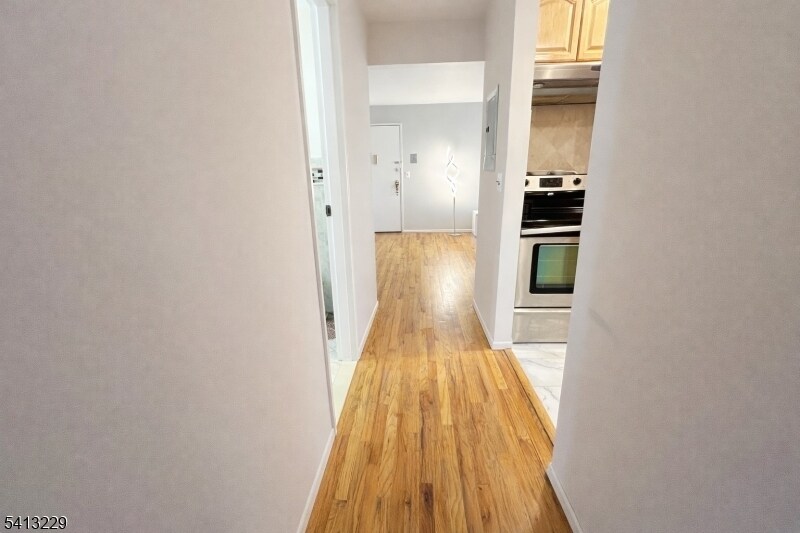 Bright and spacious, this 2-bedroom condo offers the perfect blend of comfort and convenience. Enjoy gleaming hardwood floors throughout and an open L-shaped living and dining area ideal for entertaining. The granite galley kitchen provides ample prep space for home-cooked meals. Both bedrooms feature generous closets, and additional storage in living room. Laundry is conveniently located onsite, and a dedicated parking space adds ease to your daily routine. COMMUTERS' DREAM steps from buses, trains, and major highways including Routes 3, 21, 17, 80, the Parkway and NJ Turnpike. Shopping, dining, and everyday conveniences are right at your doorstep. A comfortable, well-appointed home in a location that can't be beat!