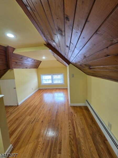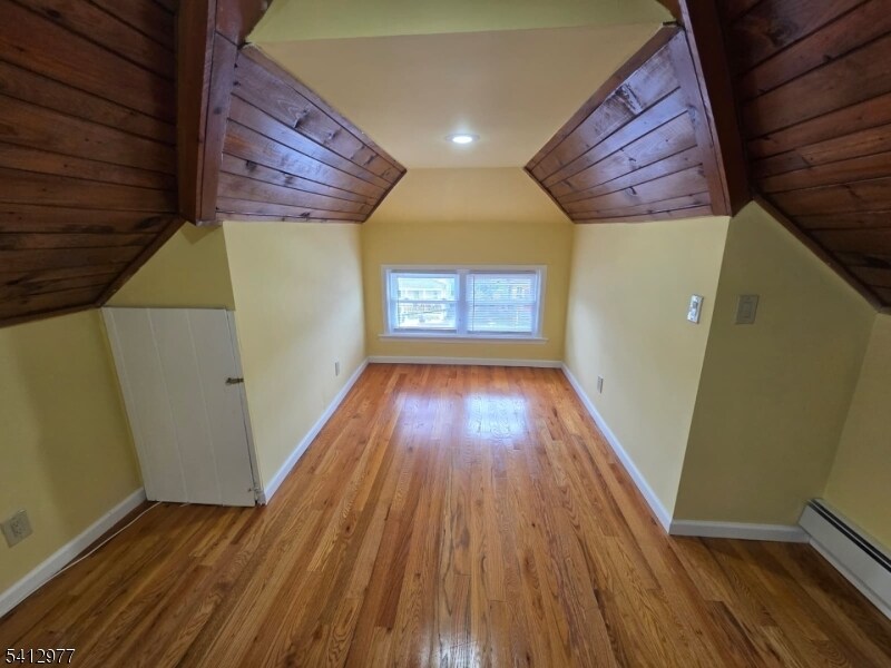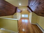 Welcome to this expansive two-floor apartment in the heart of Bloomfield. This unique 2-bedroom, 1-bathroom home features a bright open-concept living and dining area with beautiful hardwood flooring throughout. The modern kitchen is a true highlight, boasting rich cherry cabinetry, granite countertops, a stylish mosaic backsplash, and brand-new stainless steel appliances, including a dishwasher. On the second level, you will find a versatile bonus room and an additional space perfect for a home office or storage, both featuring charming wood-planked ceilings. This unit includes two dedicated driveway parking spots. Conveniently located near local shops, parks, and major transportation for an easy NYC commute. Available ASAP. Tenant pays gas/electric; landlord provides water. No laundry or pets.