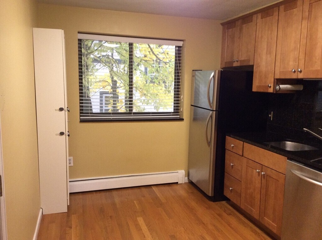 Bright top floor apartment in good condition. Two equally sized spacious bedrooms. Newer high-quality windows. Updated eat-in kitchen with maple cabinets,granite countertop,and high-end stainless steel appliances. Prime location-5 minute walk to Central Square,7-minute walk to Harvard Square,one block from #1 bus stop and Mass Ave. Whole Foods,CVS,restaurants,shops,post office are all nearby. Hardwood floors throughout. Wall AC. 1 assigned off-street parking. Heat and hot water are all INCLUDED in rent. Coin-operated washer and dryer shared with other units of this building in the basement. Currently looking for either 6-month or 18-month lease starting 3/1. MLS# 73474605