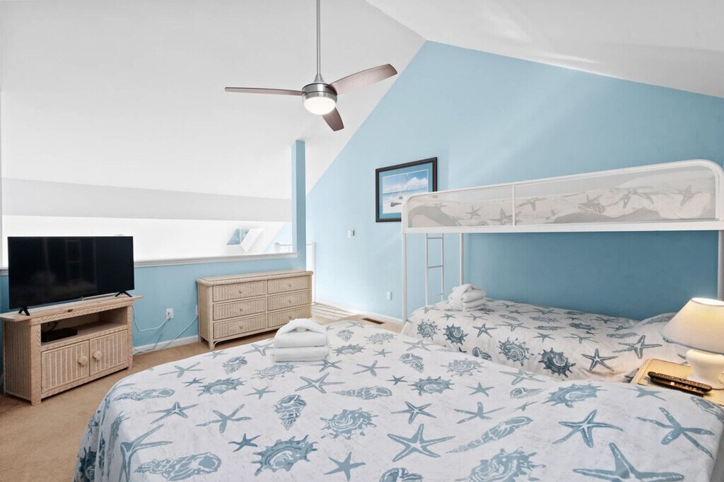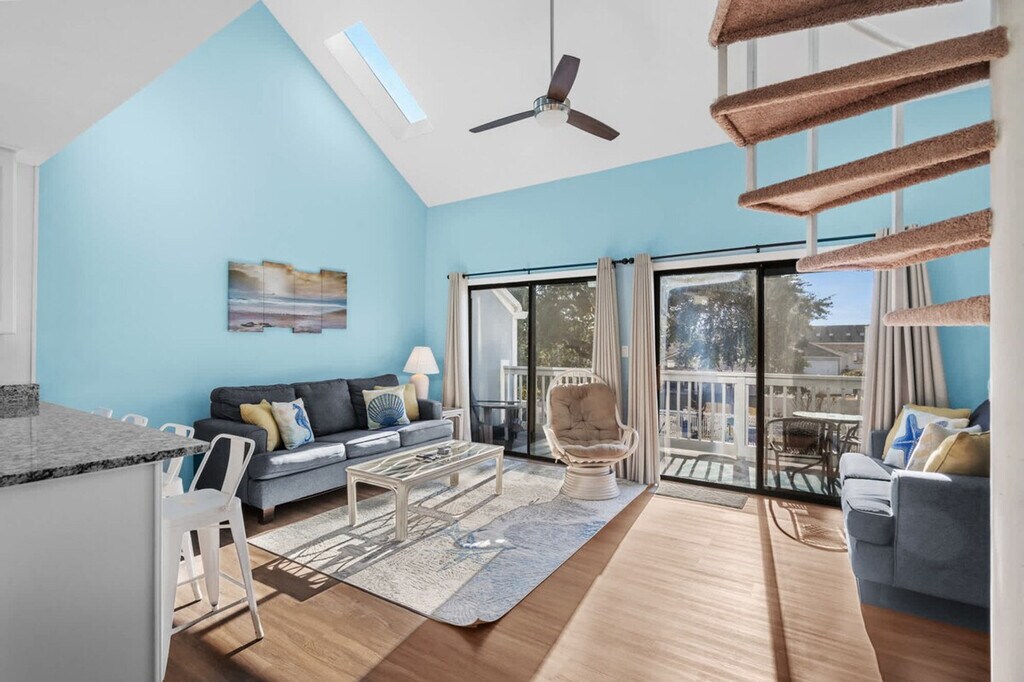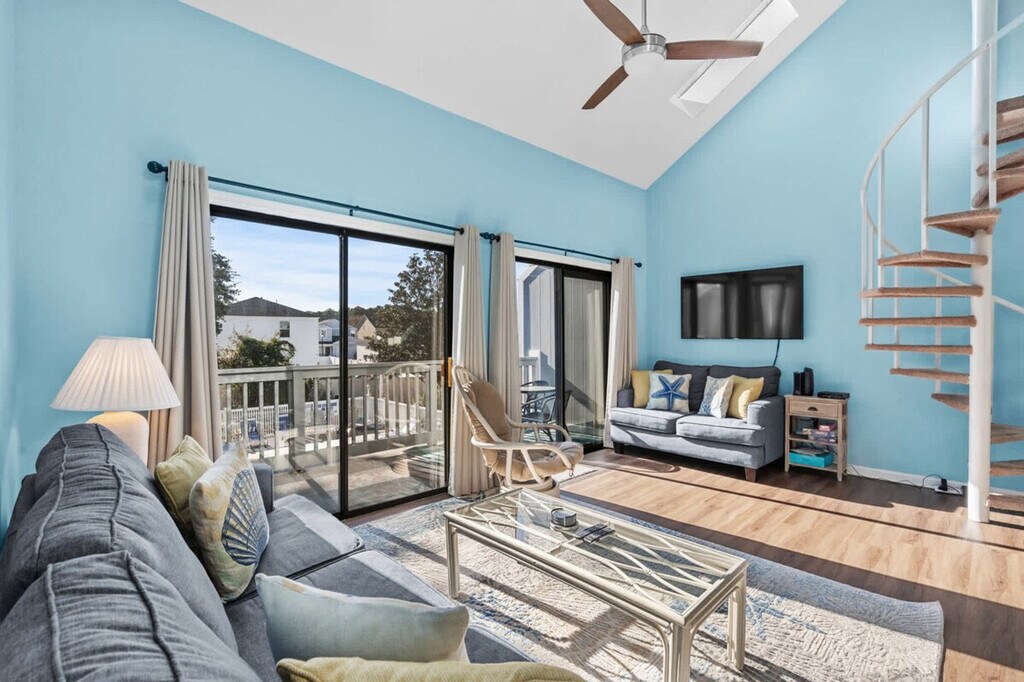 Feel at home in this sun-soaked 2-bedroom, 2-bath home in family-friendly Surfside Beach, the perfect getaway for relaxation and beach fun. Large, cozy living areas and private sleeping accommodations will welcome you home after a day of excitement. The updated kitchen with modern appliances is fully stocked so you can cook any meals you like at home. It opens up to the open plan living room with a 55" smart TV for streaming or watching cable. Upstairs, you will find a loft area. Linen service for all beds in the home, as well as bath towels, hand towels, and wash cloths, can be provided for an additional fee of $50 for your stay. Located just 1.5 miles from the Surfside beaches, this home is close enough to the amenities of Myrtle Beach (10 mins north) and Murrells Inlet, the "Seafood capital of SC", just 15 mins south. You will be less than 10 minutes from 4 grocery stores, dozens of delicious local restaurants (chains and independents alike), and any big box stores you need. Spend the afternoon sunning on the beach, or exploring the Grand Strand. Unwind on the plush sofa or love seat and armchair living room seating and plot your evening’s adventures. Guests must be 25 years of age or older to reserve. Routine pest control treatment may be scheduled during your stay, typically occurring on the 3rd Thursday of even months. The technician will knock before entering and will complete the treatment in just a few minutes. Cooperation is essential, and a fine may be applied if entry is refused. Includes a dedicated desk and monitor to plug a laptop into that is perfect for business travelers. [SI]