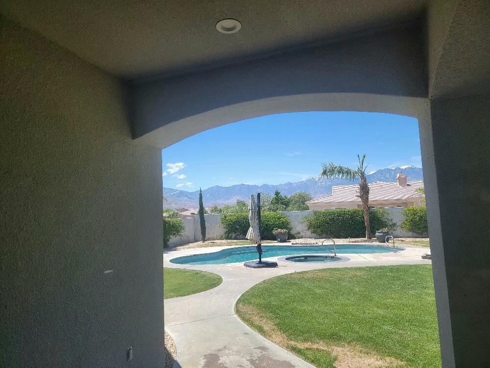 Karen Webster*Coming Soon* Annual lease. A luxury home on a cul-de-sac near Eisenhower Medical Center. This 3789 Sq Ft home has 4 bedrooms 3.5 baths and sits on a huge lot with mountain views. Located in the IID lower utility cost district. Beautiful double door glass entry. Spacious open floor plan. The island kitchen has a gas cook top, granite countertops, double ovens, breakfast bar. The primary bedroom suite has a fireplace and a retreat with built-in bookcase. The over-sized back yard has covered patio, fire pit, built-in BBQ and custom saltwater pool & spa. 3-car garage. Basic tv cable, HOA fees, pool + landscape service are included. Tenants pay utilities + screening fee. Owner will consider Seasonal Vacation rental terms at $11,000mo. *Professional photos coming after refrigerator is installed and bed is installed in guest bedroom. Contact agent to schedule your personal showing