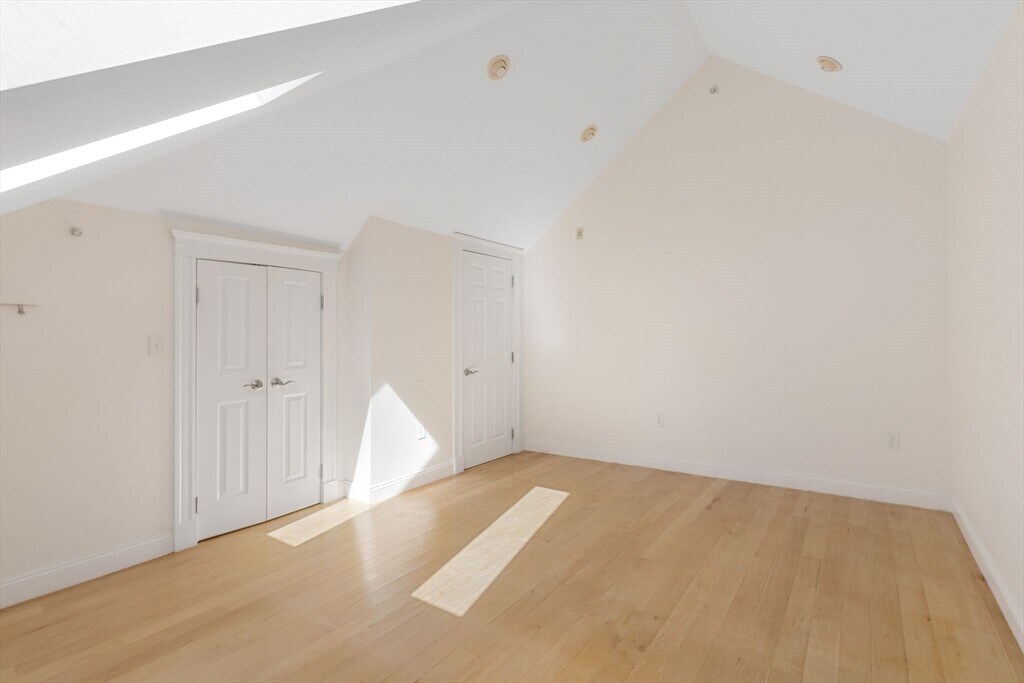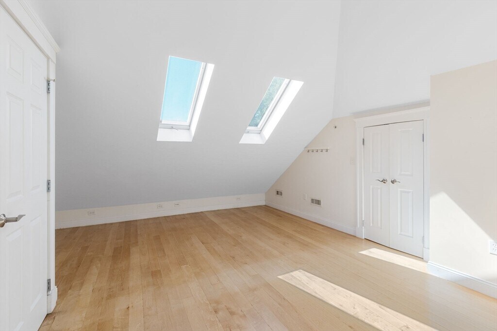 Lovely light-filled two bed/two bath condo for rent near Union Square. The first level contains a living/dining area with gas fireplace,modest second bedroom which would work best as a guest bedroom or at home office space,full bath and galley kitchen. The top floor is a large Primary Suite with vaulted ceiling and bath with walk in shower. Take those zoom calls out on one of the two outside deck options. The private rear deck,off of the galley kitchen,makes the perfect location for dining al fresco! Across the street from Market Basket,Greentown Labs and a few blocks to Union Square Bow Street or in the other direction the award winning Joesphine restaurant at the Cambria Hotel. This is a 3 unit multi-family home where everyone helps out. The tenant is expected to help with communal tasks like shared space cleaning,lawn maintenance and snow shoveling. Raised garden beds in backyard are also shared. The Landlord will consider one pet (under 25lbs) with references. MLS# 73440099
