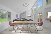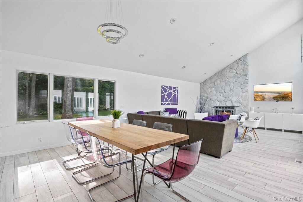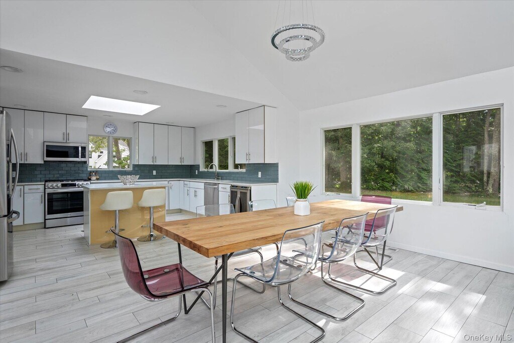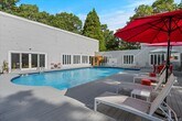 Enjoy this light-filled ranch style contemporary on a serene tree-lined street just an hour and a half from Manhattan. The home recently underwent a full renovation with porcelain white floors imported from Italy,modern subway tile bathrooms,chef's kitchen with six-burner range,Trex decking,new siding,and all new furnishings. The spacious open floor plan creates the perfect layout for entertaining. The modern California kitchen includes state-of-the-art appliances and a welcoming breakfast island. The great room offers a dining area and living room with a wood-burning fireplace and large flat screen TV. A spacious primary suite with soaring ceilings includes a separate home gym,flat screen TV and a lovely bath with double shower and double marble top vanities,Three additional bedrooms,all with modern decor,offer plenty of room to accommodate guests. A den or 5th bedroom provides a sit-down arcade with 60 games,flat screen TV and extra space to relax. Sliding doors throughout provide access to the deck that surrounds the heated pool,outdoor shower,and lounge area. An infrared sauna is conveniently located just outside the sliders. The quiet 1.1 acre property provides an expansive lawn for outdoor fun,a Har-tru tennis court with hitting wall,fire pit,soccer goals,basketball hoop,tetherball,and hammock. The private Quogue Village Beach with its pristine sand and ocean water awaits. Based on information submitted to the MLS GRID as of [see last changed date above]. All data is obtained from various sources and may not have been verified by broker or MLS GRID. Supplied Open House Information is subject to change without notice. All information should be independently reviewed and verified for accuracy. Properties may or may not be listed by the office/agent presenting the information. Some IDX listings have been excluded from this website. Prices displayed on all Sold listings are the Last Known Listing Price and may not be the actual selling price.
