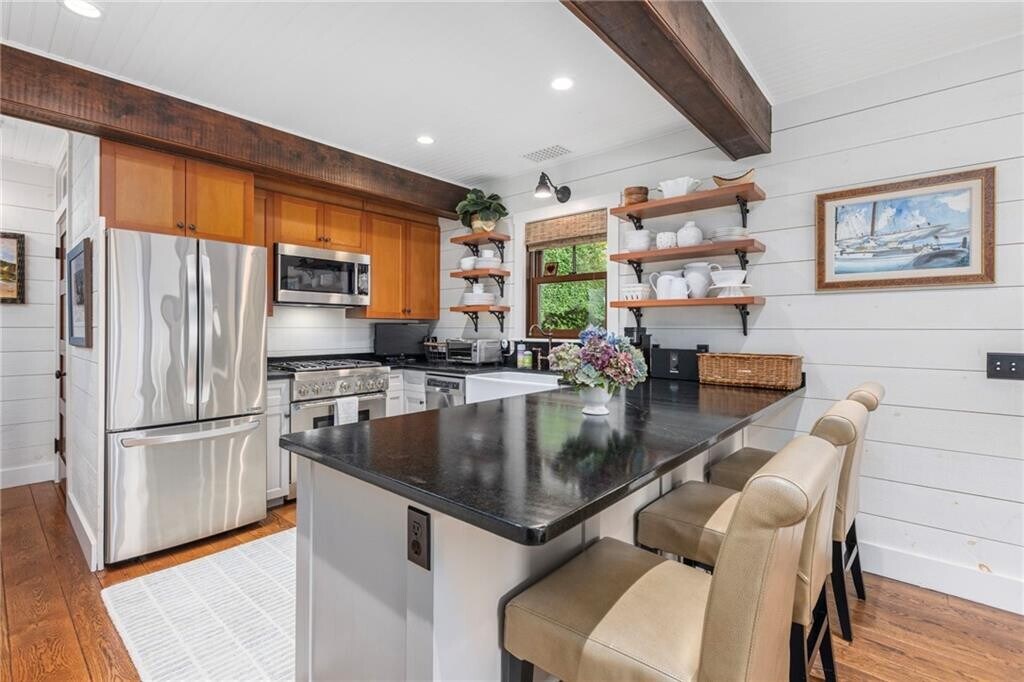 Step into the coastal lifestyle in this 2018-built carriage house,where every detail whispers “by the sea.” Shiplap walls,crisp nautical accents,and open,airy spaces set the stage for relaxed luxury living. The carriage house offers two loft-like bedrooms that easily adapt to your needs—perfect for a visiting couple or a larger group—featuring built-in daybeds and trundle beds as well as clever hidden storage to keep the space open and uncluttered. The bath vanity was crafted from a single piece of 200-year old heart pine and fits a large vintage sink with double faucets. The former garage has been reimagined as a radiant-heated dining and living area,creating a unique gathering space for cozy evenings or large dinner parties. When it’s time to unwind,head to the finished basement for movie night in the TV lounge or cocktails at the wet bar. Just moments from Ocean Drive’s sweeping views and coastal breezes and only a short walk to the beach,this is more than a home—it’s the ultimate summer seaside escape. Available Summer 2026: (June @ $20k,July and August @ $25k/month). MLS ID 1393882