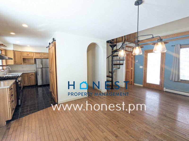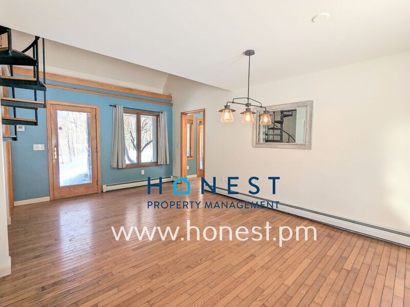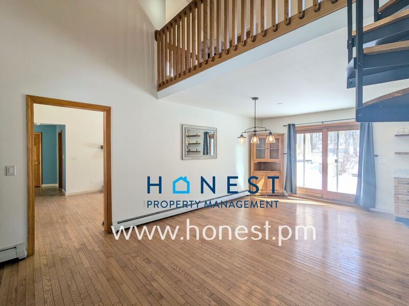 Gorgeous 2 bed, 2 bath + office/bonus loft available now! The home features an incredible primary suite with a walk-in closet, w/d, walk-in shower, and additional closet and linen storage space. Family area has a partially open kitchen with barn door pantry. The dining and living room areas are the heart of the home with cathedral ceiling, wood beams, and a fireplace. There is an additional bedroom and full bath downstairs. Then head up the enchanting spiral staircase to an enormous lofted bonus room that could be used as an office, guest room, rec room, etc. This space also has a walk-out balcony! There is also a large 2-bay attached garage, gorgeous back deck with generous seating included with home, and ample yard space. Appliances include: Fridge, Oven/Stove, Dishwasher, Washer/Dryer, A/C, Radon Mitigation System Tenant is responsible for: Propane (Primary heat, Stove), Electric (hot water, supplemental heat, A/C), Trash Removal, Landscaping, Snow Removal Owner is responsible for: Water/Sewer First months rent and 1x security deposit are due at signing. Second security deposit is due within 90 days of signing. Second security deposit may be used as last month’s rent upon move out. No smoking or vaping. Pets allowed with approval and $40/month pet fee. Honest Property Management is proud to offer all tenants our incredible Resident Benefits Package! This optional amenity includes renter's insurance, a credit score boost with on-time rent payments, $1M in Identity Theft Protection, a 24/7 emergency maintenance line, access to our Resident Concierge who will provide you with full support in your new home, gift cards, rewards, and much more! All of these are provided for a monthly fee of $25.95. Amenities: garage, office, yard, deck, radon mitigation system