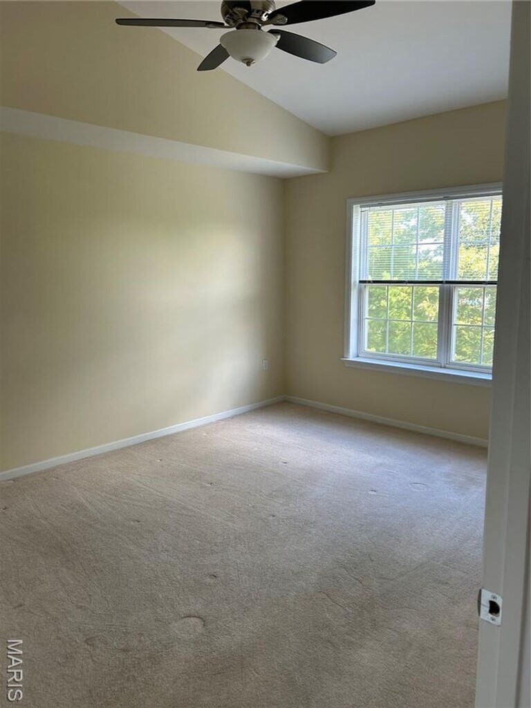 Welcome to this Spacious 2 bedroom 2 bath condo overlooking the park on the north side of the building! Awesome unit with vaulted ceilings that make this unit feel so open and bright! This condo is in pristine condition, neutral paint throughout, custom cabinets in kitchen with ceramic floors. 2 nice sized bedrooms and 2 full baths, laundry in unit, nice deck with great view. Assigned 1 covered parking spot. Storage closet down hall from unit. Great location in Chesterfield, walk to Chesterfield Amphitheatre, Chesterfield pool, parks & restaurants. Non-smoking unit. NO pets. Location: Upper Level