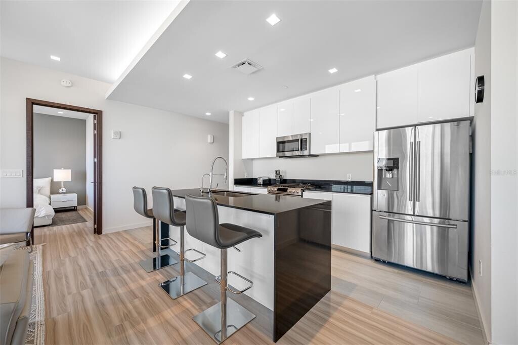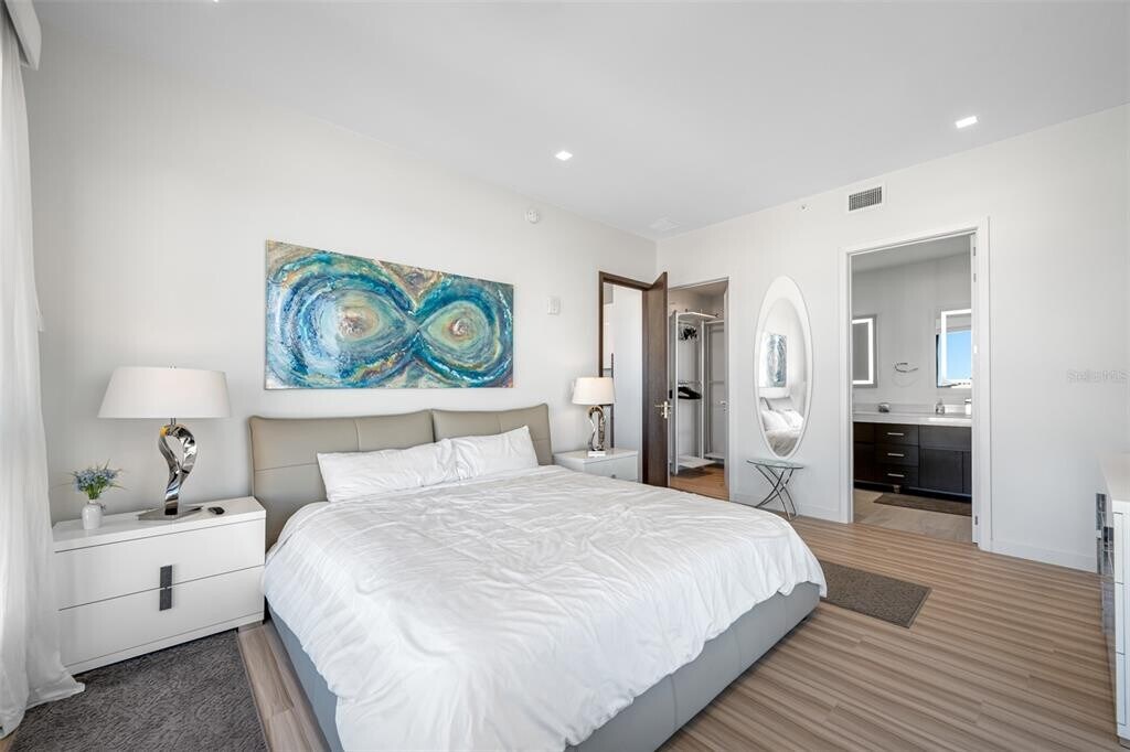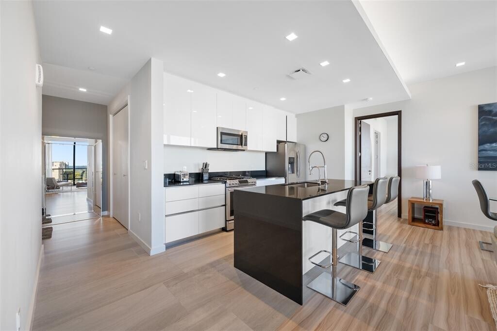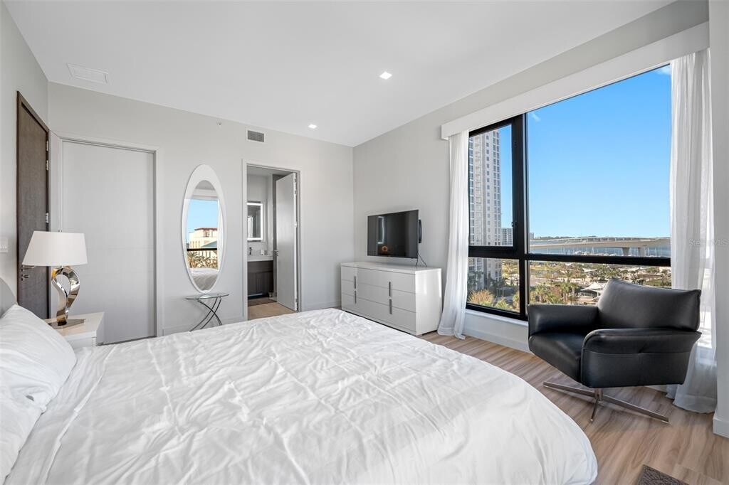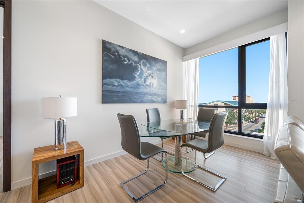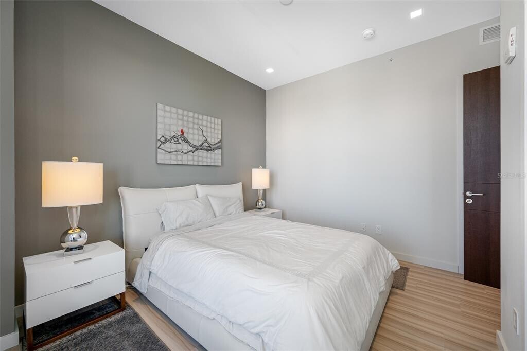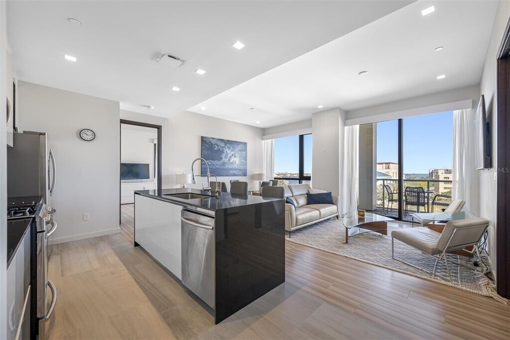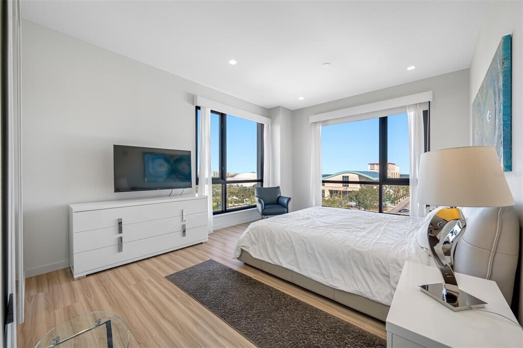 One of Downtown Clearwater's most exclusive boutique buildings in the heart of Cleveland Street District,right across from the historic Capitol Theater and overlooking Clearwater's pride,the newly redesigned Coachman Park,Clearwater Marina,and the intracoastal waterways. Walk outside your building to find numerous restaurants,coffee shops,and convenience stores. Just across the street is the beautiful downtown Main Library. The location is an easy bike ride to Clearwater Beach and two blocks from the 34-mile Pinellas Bike Trail. This condo is in a beautiful,pristine condition. 2 bedrooms and 2 bathrooms,fully furnished and turn-key. Georgeous kitchen with stylish European cabinetry,gas stove,stainless steel appliances. There is inside laundry room with a stackable washer and dryer. This unit comes with an under building garage space. Building amentities inculde 24 hour security with concierge services,gorgeous rooftop pool with poolside cabanas,state of the art fitness center,poolside playroom,"The Vault" club/ game room. MLS# TB8487985