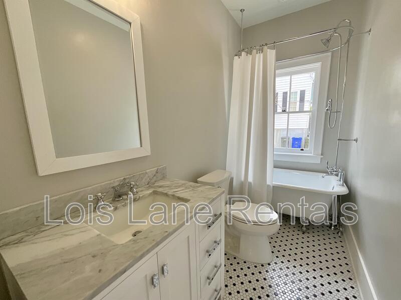 Must see meticulously restored house in downtown Charleston! The house, circa 1873, underwent an award-winning restoration recently featured on the Magnolia Network's "Restoration Road.” This unfurnished home has a large, open kitchen and living room with a vaulted ceiling and all new stainless-steel appliances, custom cabinetry providing lots of storage, and attractive black stone countertops. The cozy den features built-in shelves, a fireplace and repurposed wood floors from the original structure. There are two spacious bedrooms. The primary suite has a full bath with a walk-in shower, fireplace, and its own private entrance. The guest bedroom has an adjacent bath with a clawfoot tub/shower. Extra storage in the laundry room with a full-size, stacked washer and dryer. Outside, relax on the nearly 30-foot piazza overlooking the backyard and patio. Off-street parking for one car and ample on-street parking. Located in the vibrant Eastside and just a short walk to cafes, restaurants and shopping on King Street and only steps away from the neighborhood City Lights Coffee. All new plumbing, electrical and HVAC and move-in ready. Application fee is $75 per adult applicant. Available February 3rd.