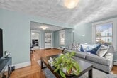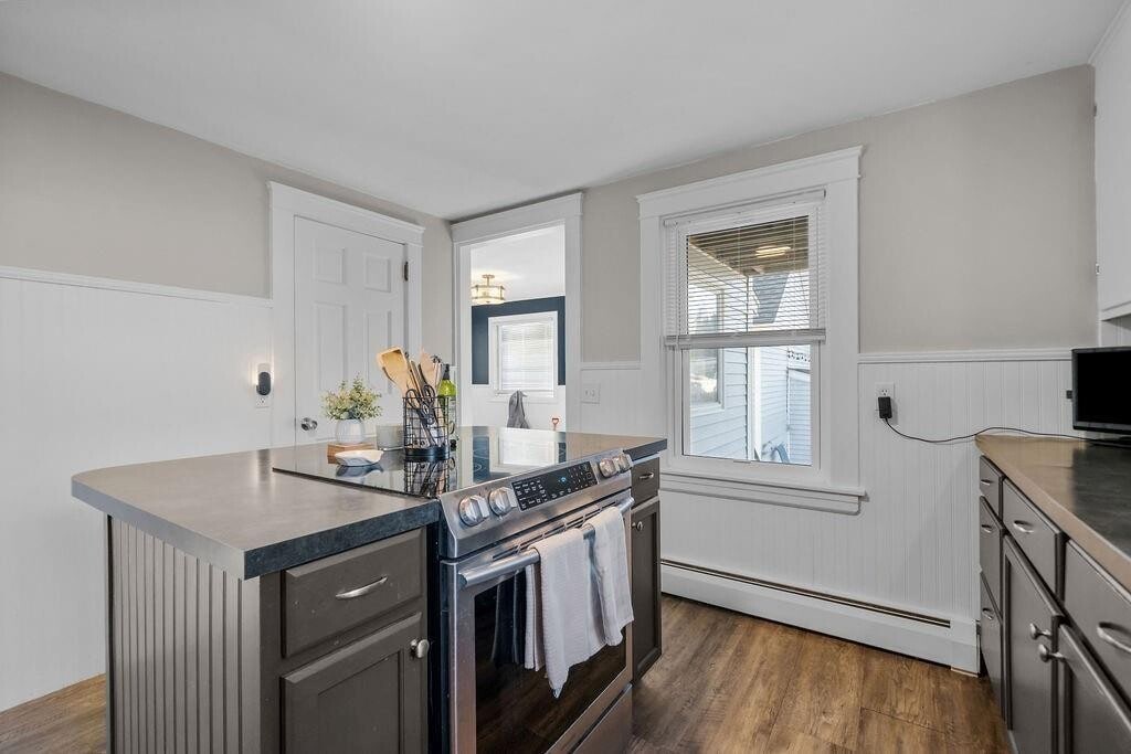 This first-floor 2-bedroom,1-bath apartment is located in Warwick’s desirable Governor Francis neighborhood,set within a two-family home surrounded by single-family properties,offering a more residential feel that’s not typical for multi-family living. The layout features a spacious double living room with hardwood flooring and built-ins,along with an oversized primary bedroom with exceptional closet space and a well-proportioned second bedroom. The renovated kitchen and bathroom are finished with stainless steel appliances and a clean,modern tiled shower. A heated mudroom just off the kitchen adds practical everyday space and leads to a private side entrance. Additional features include basement access with a washer and dryer,along with dedicated storage space. The unit is equipped with keyless entry,upgraded thermostats,and mini-splits for air conditioning. Outside,enjoy a large fenced-in yard and the convenience of a garage. Available May 1. Small dogs may be considered. Background check and references required. Tenant responsible for gas,electric,and internet. Located within minutes to local shopping,dining,schools,highway access,and more. *Unit will be vacant and unfurnished at occupancy. MLS ID 1406937