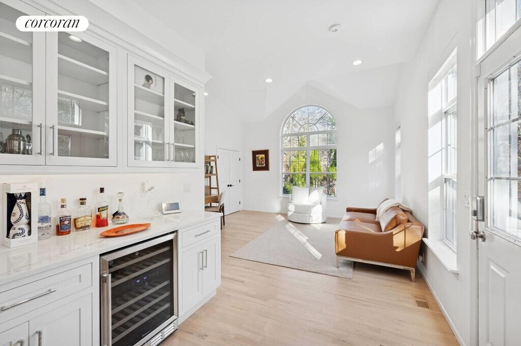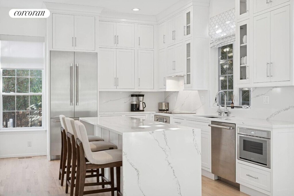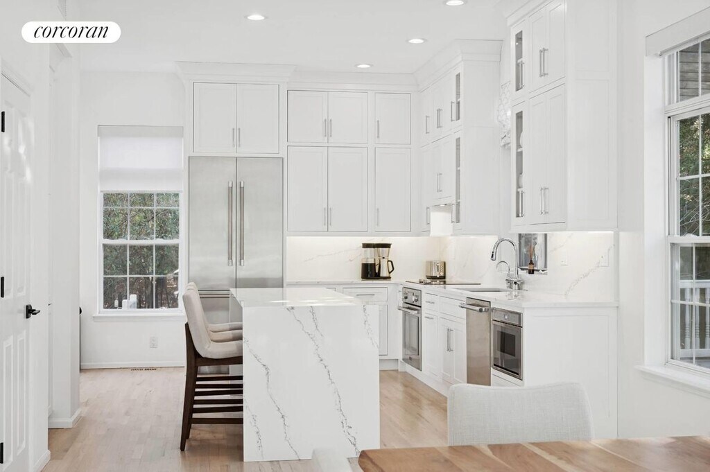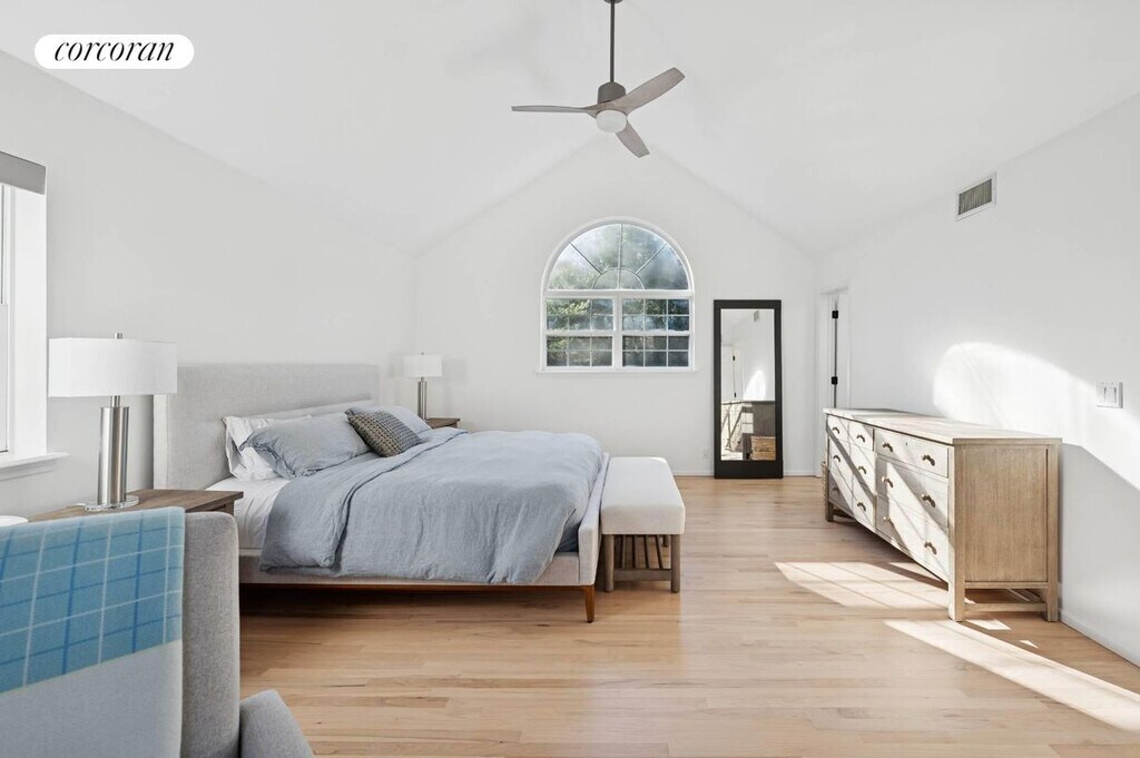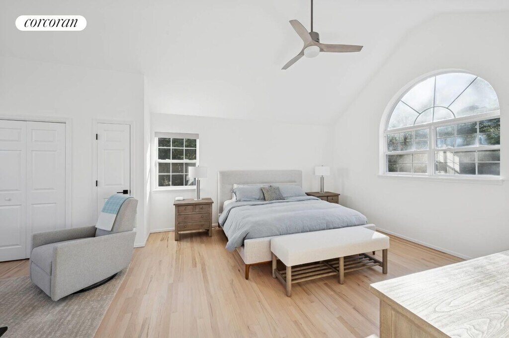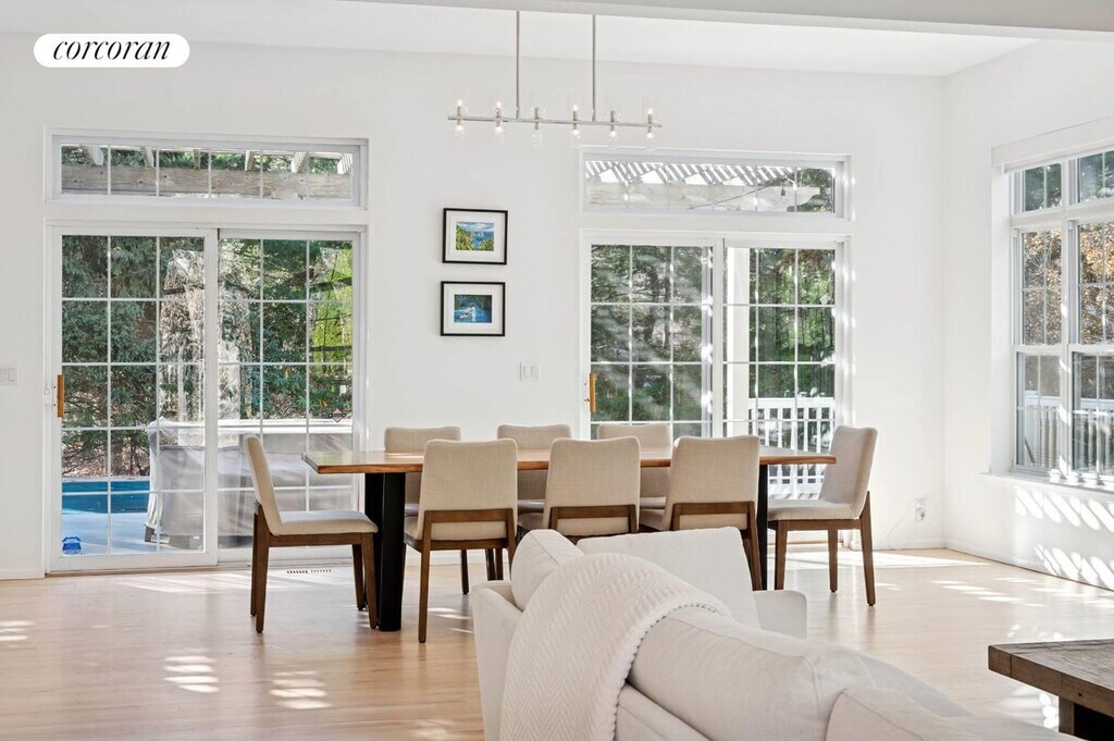 Recharge and rejuvenate in this private retreat, perfectly nestled within a quiet cul-de-sac on a lush, secluded 1.5-acre property. Enter through the white gated driveway and feel an immediate sense of privacy and calm. Upon entering the completely renovated home, you're welcomed by soaring ceilings and expansive windows that flood the first floor with natural light. The open-concept layout offers a seamless flow between the bright living room, new kitchen, and dining area-all overlooking the pool and landscaped gardens. A spacious den and a full bathroom complete the main level, along with an oversized wrap-around deck ideal for relaxing or entertaining guests. Upstairs, the generous primary suite features high ceilings and abundant space. Three additional bedrooms and a renovated bathroom provide ample accommodations for family and visitors. The beautifully landscaped pool area offers the perfect balance of sun and shade, creating a resort-like setting for lounging and outdoor enjoyment. A separate two-car garage adds convenience. Located just minutes from ocean and bay beaches, as well as shops, restaurants, and all the amenities the Hamptons have to offer, this property provides the ultimate combination of tranquility and accessibility. [[Rental Registration # 25-1095]]