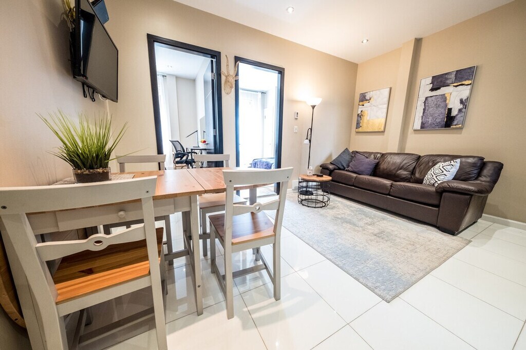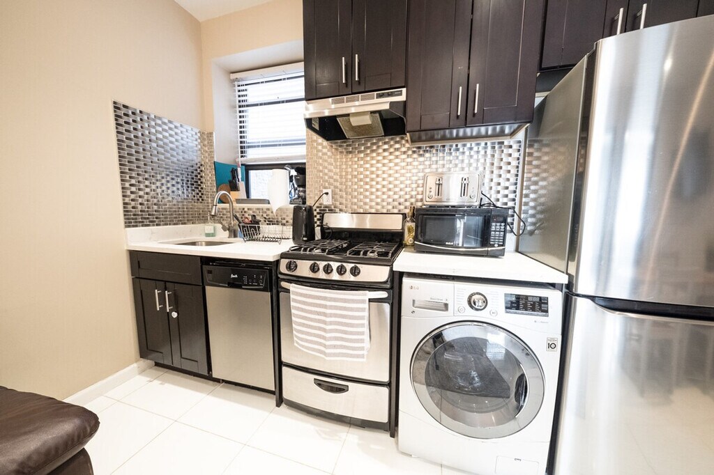 Welcome to your perfect Manhattan retreat, a newly renovated 2-bedroom apartment nestled between Central Park West and Manhattan Avenue. Located on the second floor of a walk-up building, this apartment offers a cozy living room with a leather couch and dining table, perfect for lounging or dining in. The apartment features two full-size bedrooms, each equipped with a closet, desk, mirror, air conditioning, window, and hairdryer. The fully equipped kitchen includes a large refrigerator, stovetop, oven, microwave, toaster, coffee maker, pots, pans, cutlery, and utensils. Enjoy the marble bathroom with both a shower and a tub, and take advantage of the in-unit washer, free to use. Stay connected with ultra-fast Wi-Fi at 600 Mbps and enjoy air conditioning in every room. All utilities are included, such as heat, hot water, electricity, and internet. Enjoy the convenience of self-check-in and no checkout chores, just pack and go. Situated just 100 meters from Central Park, this prime Manhattan location offers easy access to the city with a 2-minute walk to the B/C and 1 train. You'll be steps away from Whole Foods, cafes, and restaurants, and close to Columbia University, the American Museum of Natural History, and more. Ideal for families, professionals, and NYC explorers. Smoking inside or outside of the house will result in a fine of $500. Pets are not allowed. Luggage storage is not available, so please use a service like to store your luggage before check-in or after check-out. The apartment is available for a minimum of 30-night rentals only. Quiet hours are from 10 pm to 7 am. Check-out time is 11:00 AM, and all dishes should be placed in the kitchen sink, and all trash in the trashcans. Excessive cleaning charges may apply at the owner's discretion. Kindly note that a $350 refundable security deposit is required and will be collected directly by the partner after your booking is confirmed. The security deposit will be handled through direct communication with the partner and is not processed automatically.