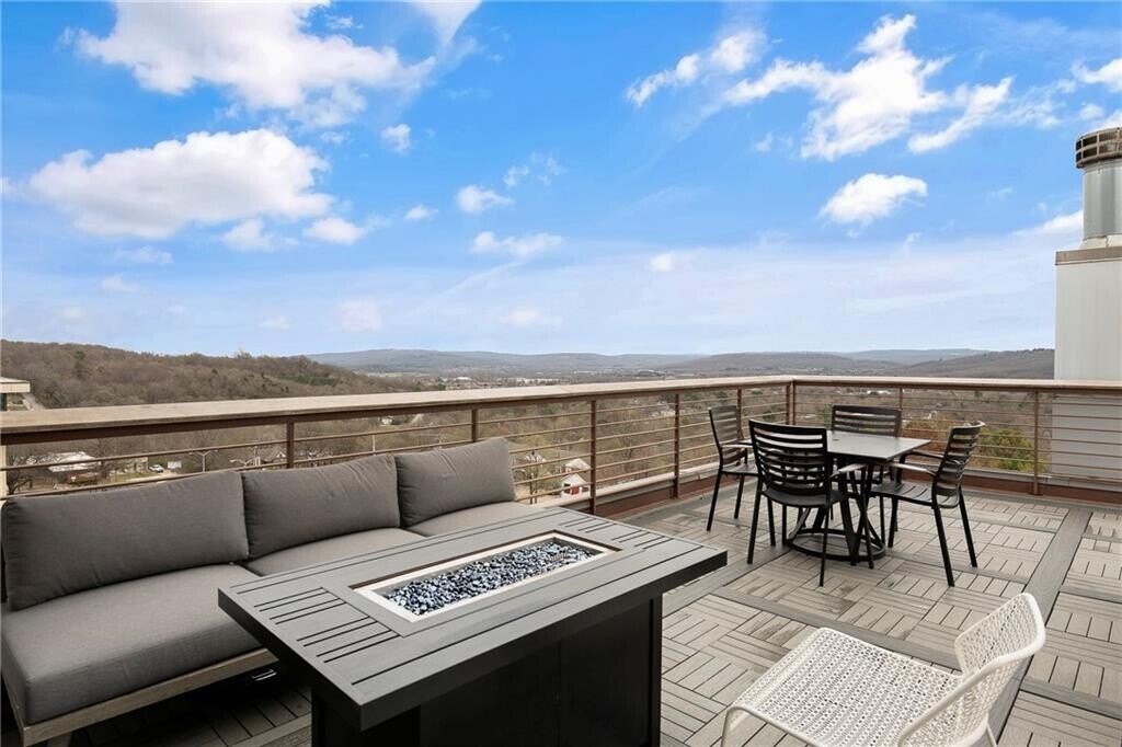 Rare opportunity to rent a 3,870 SF luxury condo located directly on the Fayetteville Square. This residence privately spans the 4th through 7th floors and sits adjacent to the Fayetteville Convention Center, offering unmatched access to downtown dining, shopping, and entertainment. The condo features two bedrooms, three full bathrooms, and one half bath, along with a loft, dedicated bar room, and an expansive living room with fireplace. The kitchen and dining area open to a sunroom with an additional fireplace, creating an ideal space for entertaining. Multiple patios are included, one of which is directly accessed from the primary bedroom. The primary suite also offers two walk in closets and a private retreat feel. Floor to ceiling windows provide panoramic, 360 degree views of Fayetteville. The property includes a private garage with elevator access directly to the condo. Modern finishes are featured throughout, including updated appliances, lighting, fixtures, and flooring. MLS# 1332226