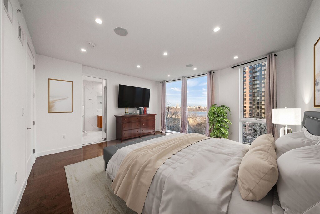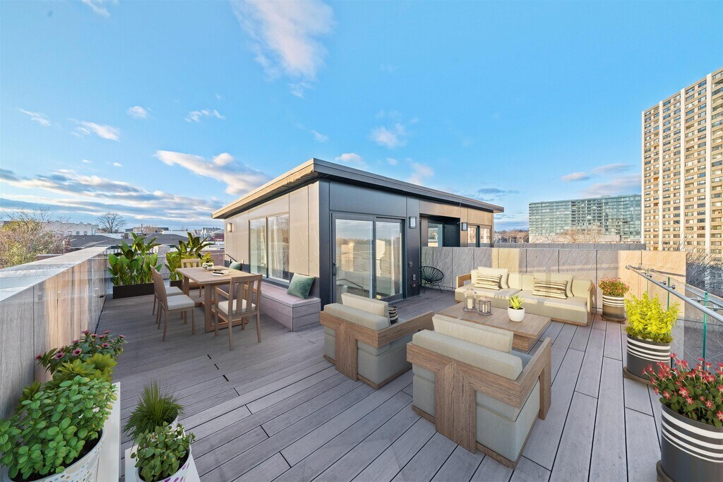 A Modern and luxurious townhouse with dramatic New York City views. The 3300 square foot floor plan was carefully designed to maximize living and storage space. Every area of the home feels spacious and open. An oversized quartz center island, cabinet lighting and Miele appliances make up the sleek kitchen. Walls of windows throughout, Private Elevator, Gas Fireplace, Attached Two-Car Garage and Private Rooftop Deck Crown the Home.