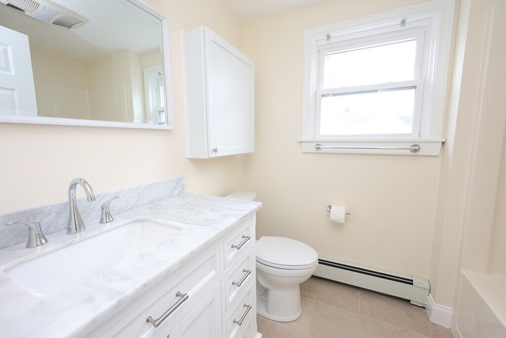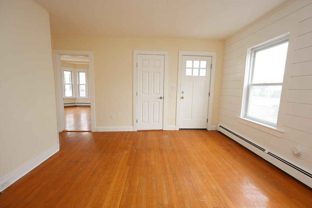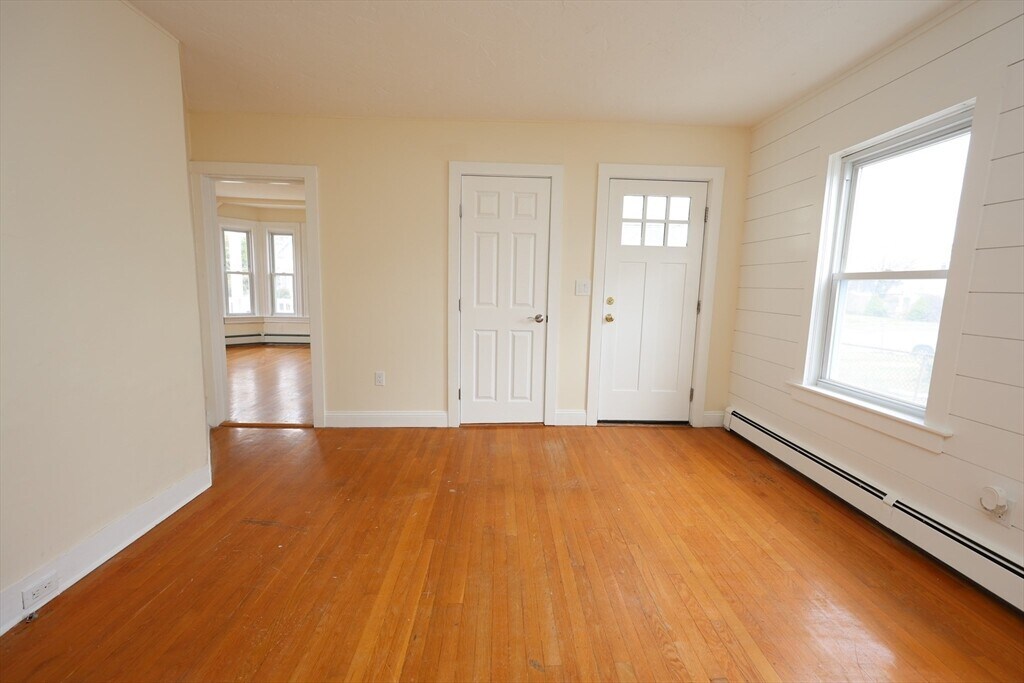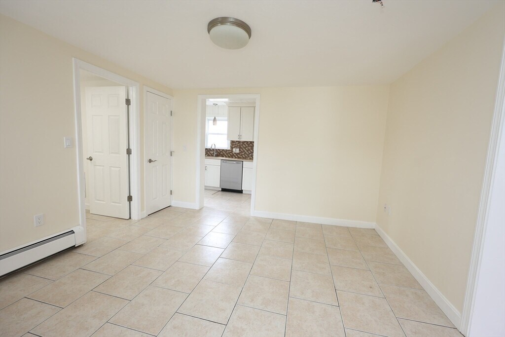 Welcome home to this beautiful apartment home,first floor of a two family home boasts a private entry way with patio access,large formal dining area with ceramic tiling flowing into the fully appliance kitchen with a dishwasher,disposal,built-in microwave,good cabinet space. Formal laundry room off the dining area with washer and dryer hook-ups,good size living room,master bedroom featuring a brand new en-suite full bath. All hardwood floors and ceramic tiling throughout for easy maintenance,beautifully manicured yard makes those summer BBQs even more exciting. Off-street parking for one car and ample street parking available. Great location,very residential,yet less than a 10 minute walk to Stoughton Center for the commuter rail,stores,restaurants and shopping. This is a strictly non-smoking property and no pets are permitted. Available April 15,2026 — strong credit,and solid references required. Currently undergoing renovations,this is a beautiful apartment home! MLS ID 73484454