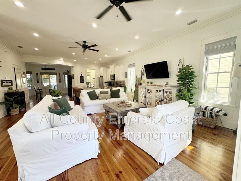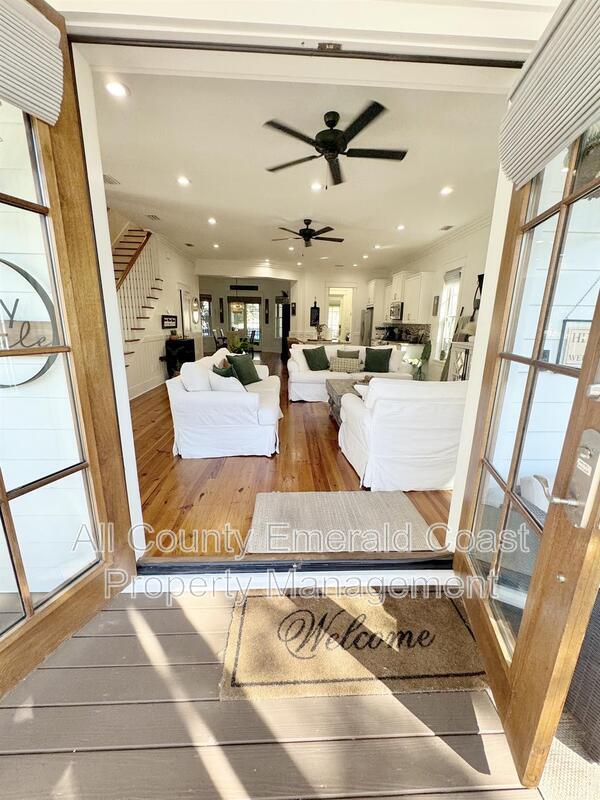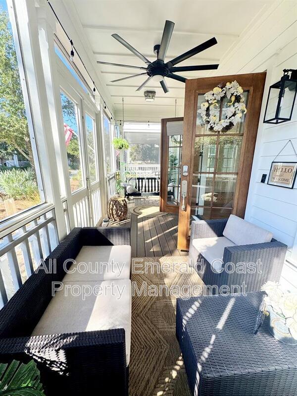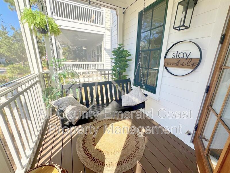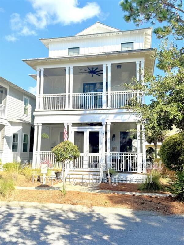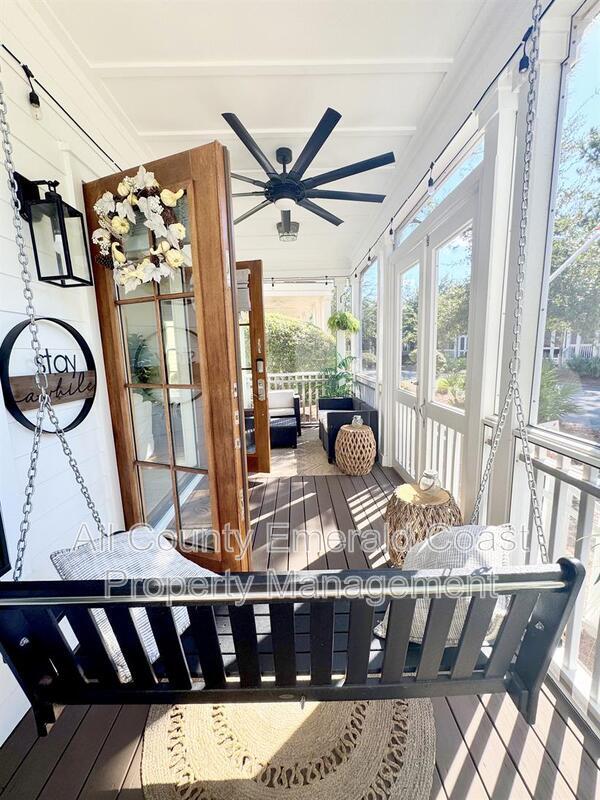 SITUATED JUST MINUTES FROM SEAGROVE BEACH ON 30A!!!! This exquisite, fully furnished four-bedroom, four-and-a-half-bathroom residence encompasses 3,049 square feet of meticulously designed living space and is equipped with an array of amenities. Situated within a beautifully finished section of the community, you will relish mature landscaping that fosters a private and tranquil ambiance, complemented by ample overflow parking in close proximity. Whether you are seeking relaxation or hosting gatherings, you will appreciate the charm and serene vistas from one of the home’s five spacious covered porches. Internally, no detail has been compromised. You will discover v-groove paneling and cottage-style crown molding on the first floor, exquisite pine hardwood flooring throughout, tiled bathrooms, soaring 10-foot ceilings, and thoughtfully designed wide staircases. Even the porch ceilings are adorned with custom detailing, showcasing the exceptional quality and craftsmanship that is rarely found in the majority of homes within the community. An outdoor shower enhances convenience for beach days and backyard activities. The chef’s kitchen is equipped with GE stainless steel appliances, a gas cooktop, granite countertops, a tasteful backsplash, and all the functionality and style that one could desire. Unlike typical newer homes, this property is equipped with high-end features such as two Rinnai tankless hot water heaters, three Carrier air conditioning units, five covered porches, and premium Andersen windows and doors, providing both aesthetic appeal and enduring performance. As a resident of this vibrant community, you will also gain exclusive access to “The Gathering Place,” an exceptional amenity center featuring a resort-style beach-entry pool, a heated lap pool, a children’s splash pool, a tot lot, fire pits, grilling areas, hammocks, and a seasonal beach shuttle, all set against the picturesque backdrop of Point Washington State Park. Do not miss this rare opportunity to reside in a truly exceptional home. Schedule your private tour of 50 Cinnamon Fern Lane today! Leasing unfurnished is negotiable. Pets subject to approval with pet fees. ***Ask about our resident benefit package*** ***Pay your security deposit in installments rather than all at once with Qira!!!***