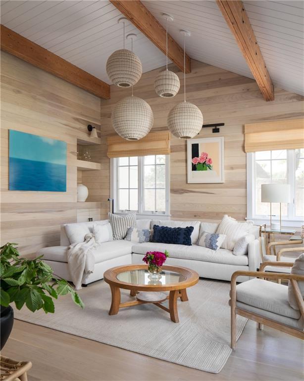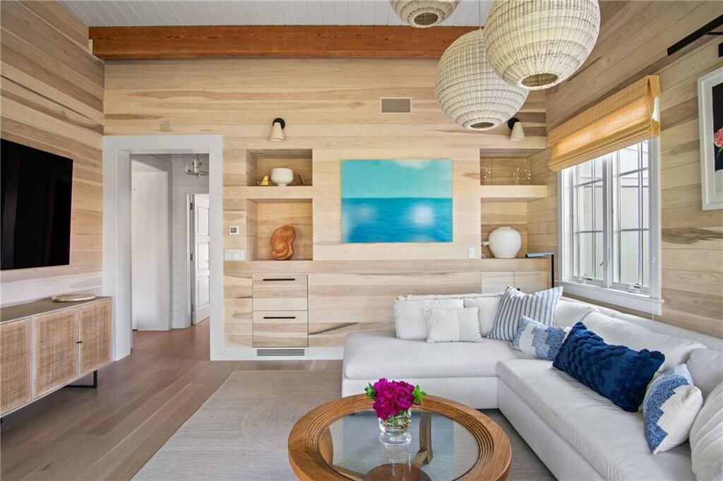 Available JUNE 2026 @ $35,000/MO. 'The Villa' is an elegantly renovated carriage house situated on a gated 7-acre estate steps from the fabled Cliff Walk. Encompassing true luxury with all of the comforts of home,the furnishings in this home were hand-selected with both sophistication and relaxation in mind. The main level features cathedral ceilings,with original exposed beams,hardwood floors,and gorgeous light fixtures throughout. It also offers a first-floor bedroom with en suite bath and walk-in closet. A stylish powder room and a sun filled den with wall-to-wall sliding glass doors lead out to the patio and sprawling grounds. The chef’s kitchen features chic mid-century modern wood cabinetry,black honed granite countertops and all-new Bosche appliances. Off the kitchen is an elegant dining room with a marble dining-table for 6 guests,with adjacent cozy sitting areas in front of the wood burning fireplace. Upstairs,you will find 4 beautifully appointed bedrooms. The primary suite boasts a spa-like bathroom with white marble flooring,a glass-encased shower,and exquisite fixtures. The adjoining primary bedroom has a king-sized bed,his & hers walk-in closets and shiplap walls. Three additional bedrooms offer chic design,beautiful bedding and wonderful light. Perfectly positioned windows allow for sunlight to stream through from sunrise to sunset. No pets will be considered. Rented for July and August. MLS ID 1404740