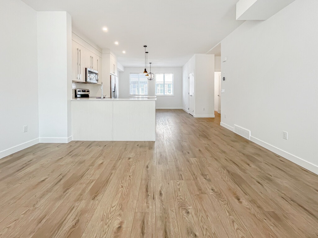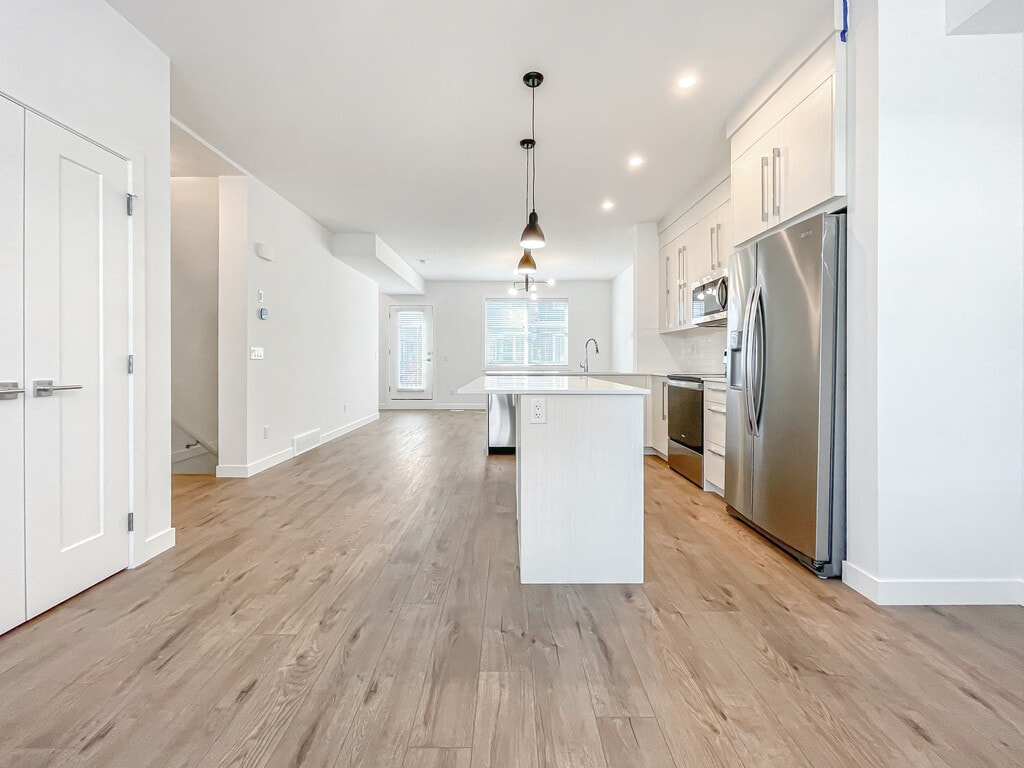 MODERN & SPACIOUS 3 BEDS, 2.5 BATHS TOWNHOUSE | DOUBLE ATTACHED GARAGE Welcome to this beautifully maintained, 2021-built townhouse in the vibrant community of Cornerstone. Offering a perfect blend of style and functionality, this home features a bright open-concept main floor, high-end finishes, and the rare convenience of a double attached garage—perfect for keeping your vehicles warm and secure during Calgary winters. - BOOK A SHOWING: Fill out the Contact Landlord form. We are just a message away. Interior Highlights: * Chef-Inspired Kitchen: Featuring sleek white cabinetry, a large quartz island with seating, a subway tile backsplash, and full-size stainless steel appliances. * Bright Living Spaces: An expansive open-concept layout with durable luxury vinyl plank flooring and massive windows that flood the home with natural light. * Restful Bedrooms: Three spacious bedrooms upstairs, including a primary suite with a private ensuite bathroom and generous closet space. Essential Details: * Furnished or Unfurnished: Unfurnished * Pets: No Pets Allowed * Utilities: Not Included * Smoking: Non-Smoking * Parking: Double Attached Garage * Storage Included: No * Laundry: In-Suite Laundry * Management Type: Full Management * Lease Term: Long Term Property Amenities: * Private Balcony: Enjoy your morning coffee or evening fresh air on your private outdoor balcony. * Modern Finishes: Contemporary lighting fixtures, neutral paint tones, and quartz countertops throughout all bathrooms. * Double Garage: Side-by-side parking with additional room for gear or seasonal storage. Location and Community: * Cornerstone Living: One of NE Calgary's most popular new communities, designed with easy access to Stoney Trail and Country Hills Blvd. * Convenient Commute: Minutes away from the YYC Airport, CrossIron Mills, and various grocery stores (Chalo FreshCo, Shoppers Drug Mart). * Active Lifestyle: Surrounded by future parklands, walking paths, and quick access to local playgrounds and transit. Ready to call this home? Reach out to learn more. Prices and availability subject to change without notice.