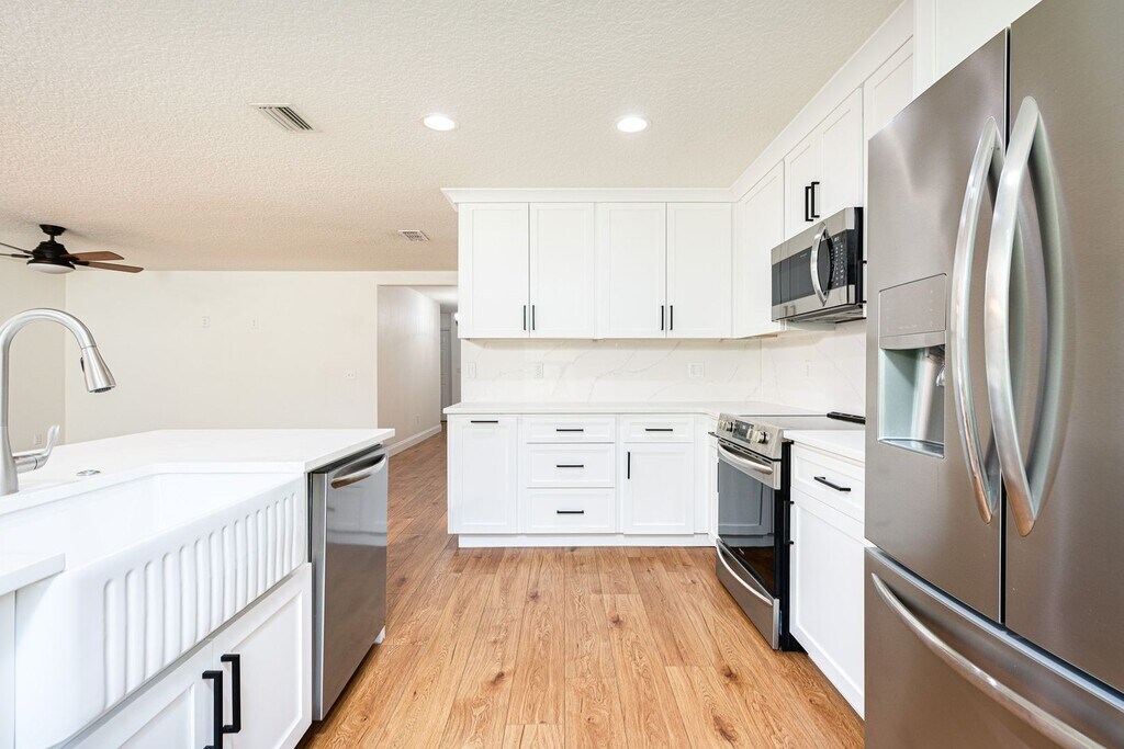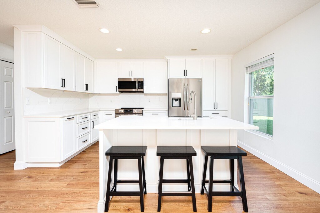 This stunning three bedroom, two bath home with a two-car garage has undergone a complete renovation in 2020, leaving no detail overlooked. The house features all new stainless steel appliances, vinyl plank flooring, and all new light fixtures were installed throughout the house, adding a touch of elegance to every room. The custom soft-close, solid wood cabinets and farmhouse sink in the kitchen island are sure to impress any chef, while the quartz countertops that continue up the backsplash provide a sleek and modern look. New baseboards and fresh paint throughout the house give it a polished finish. Both bathrooms have new vanities, and the house is equipped with a Ring doorbell and Nest thermostat for added convenience and peace of mind. The property backs up to a conservation easement and the backyard is enclosed with a new fence making it perfect for outdoor activities. This home is just steps away from the neighborhood pool and is also conveniently located close to pathways elementary, shops, and restaurants, with easy access to I-95. Don't miss out on this meticulously cared for completely renovated home. Lawn care is included. All Oceans Luxury Realty residents are also offered the Resident Benefits Package (RBP) for an additional $50.00/month which includes renters insurance, HVAC air filter delivery (for applicable properties), credit building to help boost your credit score with timely rent payments, $1M Identity Protection, our best-in-class resident rewards program, and much more! Flood insurance is purchased through NFIP (National Flood Insurance Program) and is managed by FEMA (Federal Emergency Management Agency). It is a separate insurance policy not provided by Second Nature. More details upon application. $150.00 Application Fee