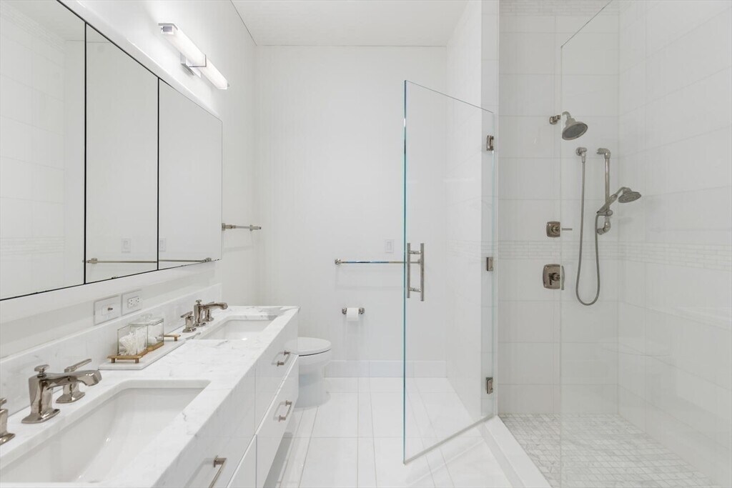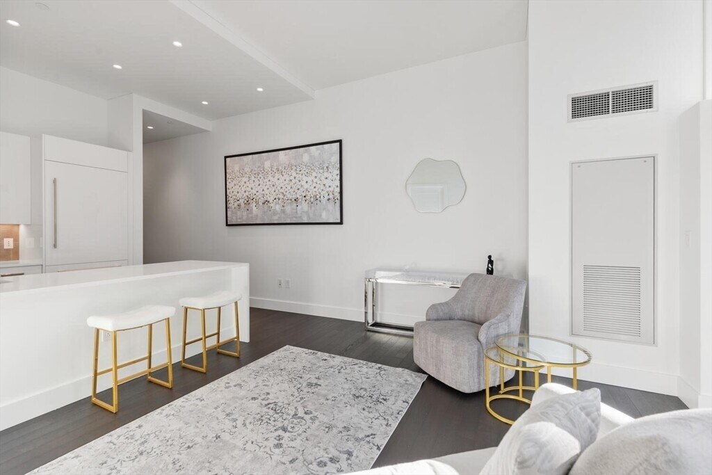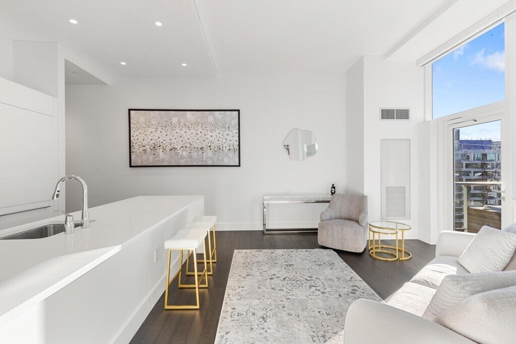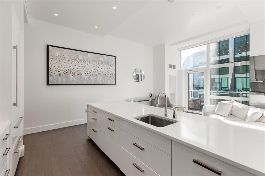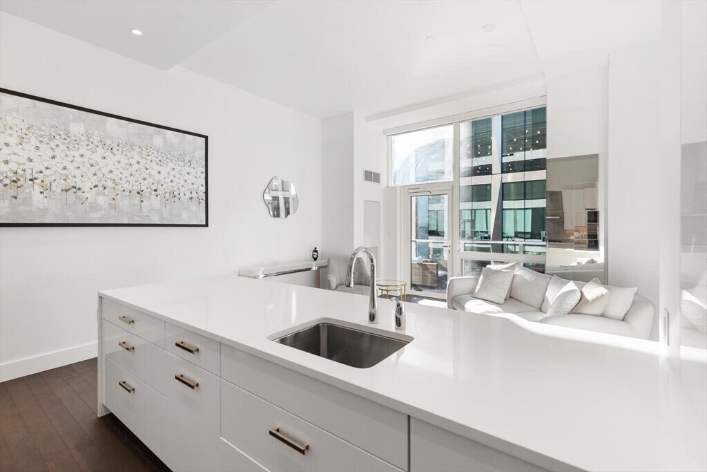 Exquisite One-Bedroom Penthouse Residence at 50 Liberty Drive located in one of Boston’s Premier waterfront residences in the highly desirable Seaport neighborhood. This residence features Open-concept layout with dramatic 13-foot hight ceilings,floor-to-ceiling windows that offers partial water and stunning city views.The Large waterfall island centers around the gorgeous white kitchen quartz countertops,custom high gloss white laquer cabinets,pantry,Sub Zero refrigerator,Wolf gas stove top & wall oven&Miele dishwasher.The spacious primary en-suite features floor-to ceiling windows with a stunning luxurias marble bathroom,double vanity with large glass enclosed shower.Half bath,washer/dryer,custom shades,1 car garage parking.Private balcony over looking the Seaport District with partial water views .Unit comes furnished.Amenties include residence lounge,waterfront terrace&boardroom,fitness center. Located to Seaport District's finest restaurants cafes,shops,Logan Airport. MLS# 73463177
