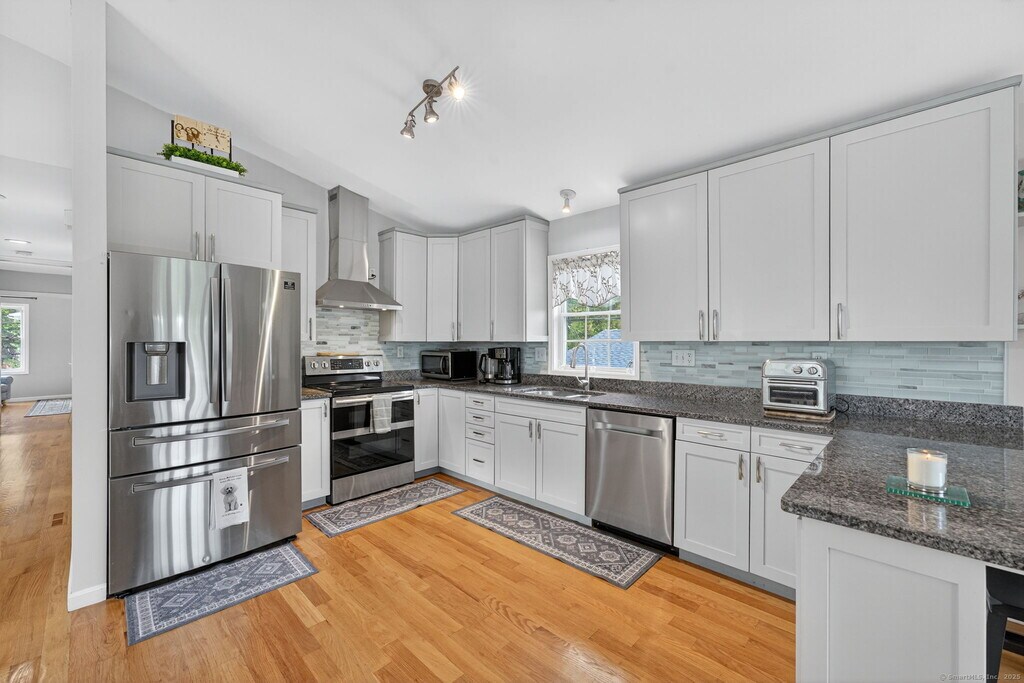 Call for Availability - Spacious 4-5 bedroom, 3 bath home located on a quiet dead-end street across from a park. The upper level features an open-concept layout with a bright living and dining area, a wood-burning fireplace, and a modern kitchen. The primary bedroom suite includes two walk-in closets and a private bath, while two additional bedrooms share a full hall bath. The lower level offers a large additional living room space, two bedrooms, a full bath, and laundry hookups. A one-car garage is located under the home, with driveway parking for four additional cars and available street parking. Enjoy outdoor living on the back patio overlooking the yard. The home is less than a mile from I-95, just three miles to Yale, and close to the East Haven line, offering both convenience and a peaceful neighborhood setting. The landlord provides landscaping, and the home is equipped with solar panels that currently cover all electric usage, so tenants will likely have no electricity bill. No prior evictions, no pets, no smoking. 1 month security deposit. Landlord requests minimum income of $8,000 monthly and credit score of 675. MLS# 24133966