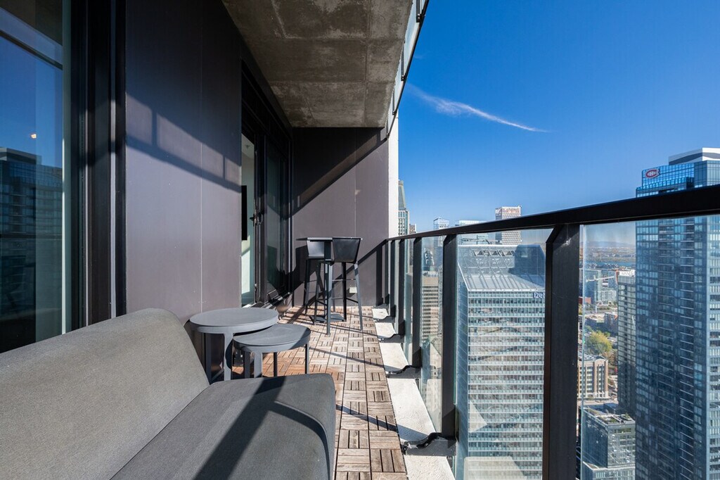 Welcome to a luxurious high-rise in downtown Montreal offering breathtaking city views. Indulge in a spacious unit with two bedrooms, two full baths, a private balcony, and expansive 10-foot ceilings that invite natural light through large, sunny windows. This property boasts high-end finishes throughout, coupled with a suite of top-tier amenities. Conveniently located mere steps from Lucien l’Allier metro station, train access, and the underground Montreal network. After visiting some exceptional apartments ourselves, we've strived to make this apartment as welcoming and cozy as we possibly could for our guests. This space welcomes four guests. It has two bedrooms with two queen beds and two full bathrooms. Enjoy a smart TV for your viewing pleasure and stay seamlessly connected with high-speed Wi-Fi throughout your stay. Indoor parking with in/out privileges is available for an additional fee depending on your length of stay. We offer a variety of cleaning services that include biweekly or monthly options for an extra charge. Built in 2016, this apartment is in the heart of downtown Montreal with security 24/7. Enjoy a fantastic terrace with a swimming pool and BBQ grills, a fitness center, a sauna and rain room, and many entertainment rooms. Just steps away from the Lucien l’Allier metro station, train, and the underground Montreal network. No parties of any kind or loud noises that can alter the harmony of residents are allowed. No smoking of cannabis, cigarettes, or any kind inside the apartment, balcony, or the building. Please care about your home away from home. [SI]