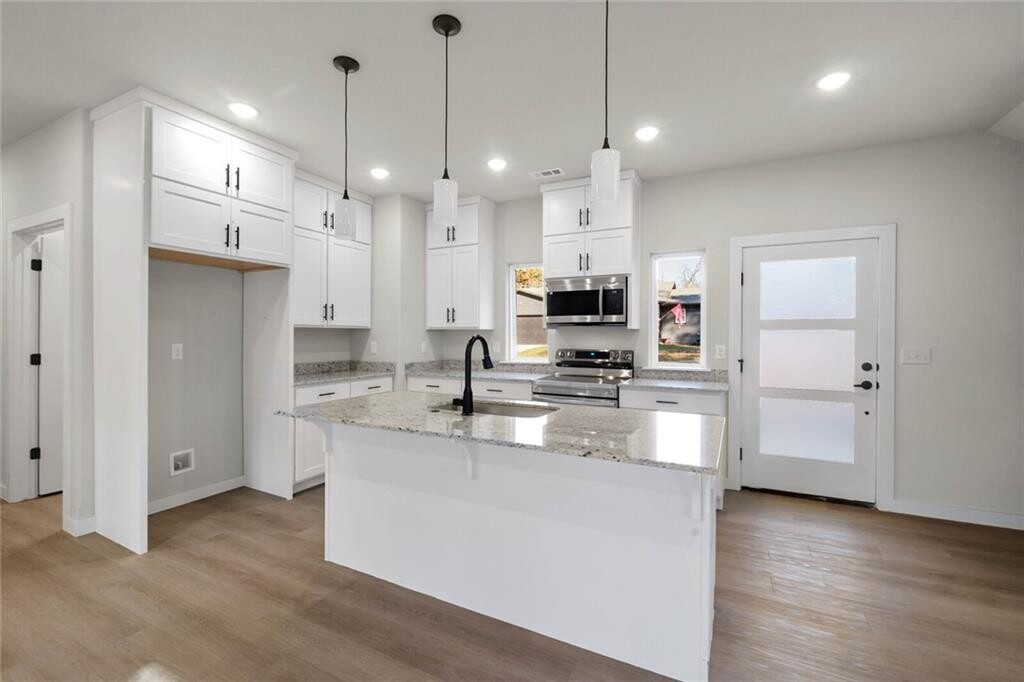 Discover this Brand New Contemporary 2- Story home in Bella Vista! Featuring 2 bedrooms, 2.5 Baths, and a versatile bonus room that can serve as a third bedroom, office, or guest space, this home offers about 1,421 sqft of modern living. Enjoy an open layout filled with natural light, luxury vinyl floors, granite countertops, and stainless-steel appliances. The primary suite includes a private bath and the backyard back to trees, offering a peaceful outdoor retreat. Located near lakes, golf courses, and trails- this home is perfectly blends comfort, style, and nature! MLS# 1334900