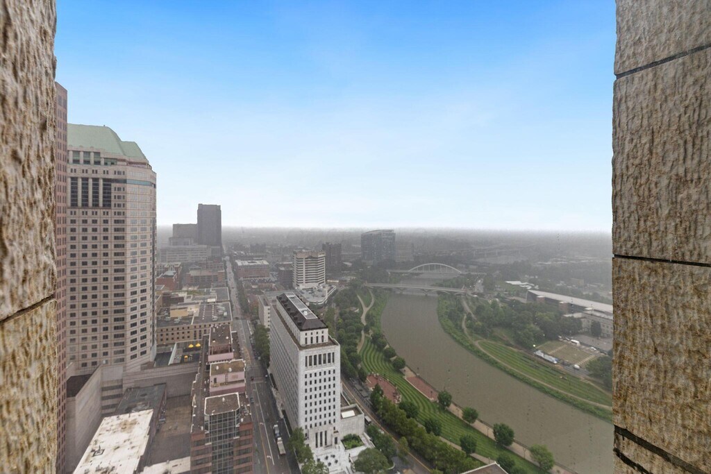 Welcome Home to your Oasis in the Heart of Downtown Columbus! Live in one of the most historic buildings in downtown,LeVeque Tower. Enter into the light filled open concept living space and kitchen,complete with stainless steel appliances,dedicated wine fridge,marble countertops,and views of the Scioto Mile and Columbus skyline. With updated flooring and closet systems,this home features 2 spacious bedrooms,both with full en suite bathrooms,and an additional half bath. The primary bedroom has a huge walk-in closet and the en suite bathroom features dual sinks,heated flooring,and tiled shower. Enjoy amenities such as 24/7 security,private entrance/elevators,on site doorman,and fitness facility. This home also provides access to Marriott amenities including room service and dry cleaning. Attached parking garage provides 2 gated and reserved parking spaces,along with the option to move into the unit fully furnished! 4-12 months lease length options. No pets,no smoking,and tenant is responsible for utility costs. Close to all that downtown Columbus has to offer,including Capitol Square,Scioto Mile,Nationwide,and Arena District. Enjoy being close to annual events happening downtown such as the Columbus Food Truck Festival,Columbus Arts Festival,Nightlight 614,Jazz & Rib Fest,CBUS Soul Fest,and WinterFest.