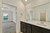 Adorable one-story home in Anna Town Square featuring 3 bedrooms, 2 bathrooms, and a large study. The open-concept kitchen flows into the dining area and family room and showcases granite countertops, luxurious 42-inch cabinets with crown molding, and stainless steel appliances. The primary suite offers a separate garden tub and shower, dual sinks, and a spacious walk-in closet. Enjoy the backyard’s covered patio overlooking a peaceful greenbelt. Located in a master-planned community with walking trails, water features, a resort-style pool, and an on-site elementary school.