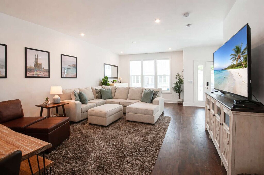 The advertised rate of $5,194/month is the lowest available price, based on a 30 day(s) stay with a move-in date of July 26, 2026. Rates vary depending on the duration of stay, season, and other parameters. For exact pricing and additional pricing components, please visit our website and enter your desired move-in and move-out dates. The rate is applicable when billed upfront; it can be higher if billed in multiple payments. Feel at home in this stunning open-concept townhome, great for smaller groups visiting Music City. This 2-bedroom, 2.5-bath townhome features a fully stocked kitchen with bar seating, a spacious living and dining area, a washer and dryer, smart TVs, and Wi-Fi. The kitchen is equipped with a double-door refrigerator, stainless steel oven and stove, blender, built-in dishwasher, and coffee maker. A starter supply of paper goods and household necessities is provided. Enjoy the large rooftop patio with a gas fire pit and a two-car garage. Located 7 miles from Lower Broadway, Nissan Stadium, Bridgestone Arena, and all the famous Honky Tonks of Nashville, this townhome is near several places of interest, including Bojangles (7 mins drive), Frankies 925 Spuntino (10 mins drive), Sapporo Rivergate (11 mins drive), Eastside Bowl (5 mins drive), and Walmart Neighborhood Market (7 mins drive). Ride share is available in Nashville as well as nearby scooters within city limits. Guests must be 18 or older, with the exception of children with their parents. Smoking is allowed on the rooftop patio, as long as guests clean up afterward. Any noise complaints or law enforcement calls to the home will result in immediate termination of your stay without a refund. There is a strict no-pet policy at this home. Registration Number: [SI]