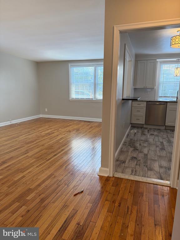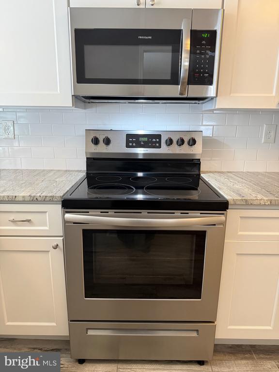 Discover this stunning corner unit featuring spacious 2 bedrooms and 1 bathroom. It includes a brand-new kitchen equipped with stainless steel appliances and ample cabinets, granite countertops with an open concept passthrough with countertop bar to the living room, fresh paint throughout, and a completely renovated bathroom. The unit boasts beautiful light, flawless hardwood flooring in the bedrooms, living room, and hallways, with luxury vinyl flooring in the bathroom and kitchen. Enjoy central air conditioning, crown molding, and bedrooms that can accommodate king-sized beds. Additionally, there is a massive sized private basement bonus room with a washer and dryer. This unit is located within the charming and tranquil community of Saint Davids Park Condominiums, just minutes from downtown Wayne, shopping, restaurants, and public transit. Optional garage parking is available for an additional fee.